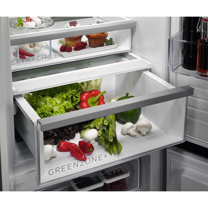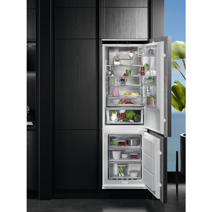 Холодильник AEG оснащений функціями, такими як швидке заморожування та Coolmatic для моментального охолодження свіжих продуктів. Автоматичне розморожування обох камір також спростить обслуговування. Окрім того, є алерні системи, які сповіщають про підвищення температури або відкриті двері.