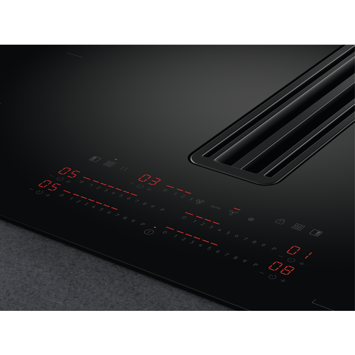 AEG XCD6847AB обладнана четирма індукційними зонами обігріву, які мають триступеневу індикацію залишкової тепла завдяки OptiHeat Control. Для зручності використання передбачена електронна регуляція та Touch on glass панель управління.