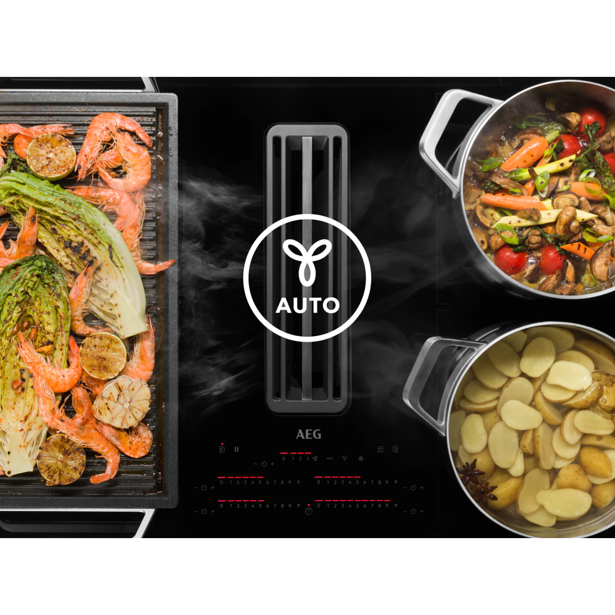 Духова витяжка AEG XCD6847AS поєднує в собі елегантність і високі технології для вашої кухні. Ця модель являє собою інноваційне комбіноване рішення 2 в 1, об'єднуючи індукційну поверхню та систему витяжки в одному пристрої.