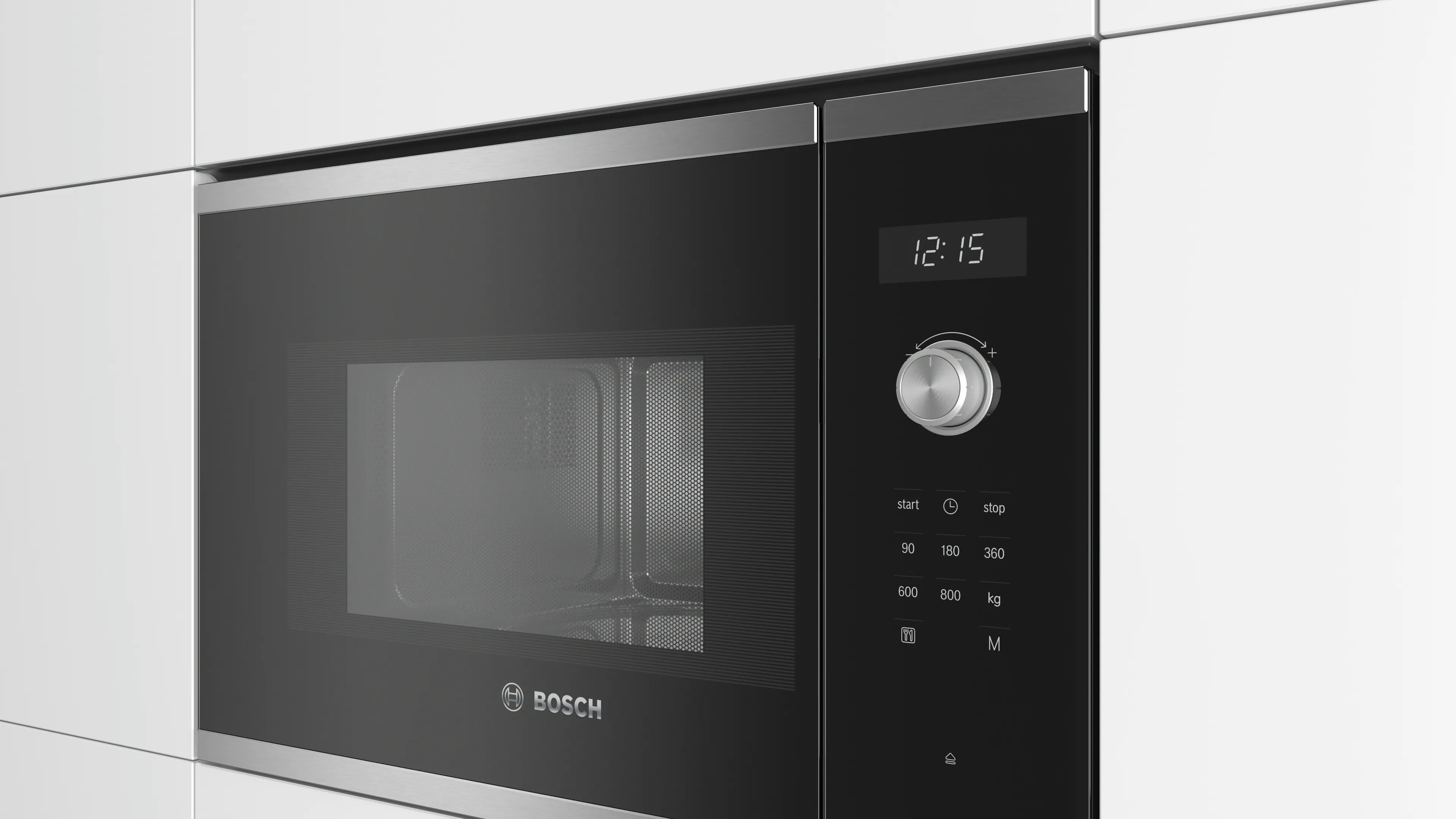 Bosch BFL524MS0 – це вбудована мікроволнова піч з елегантним дизайном, виготовлена з нержавіючої сталі. Її габарити складають 382x594x317 мм, що робить її ідеальним вибором для сучасної кухні. Об'єм камери – 20 літрів, що забезпечує достатньо місця для приготування різноманітних страв.