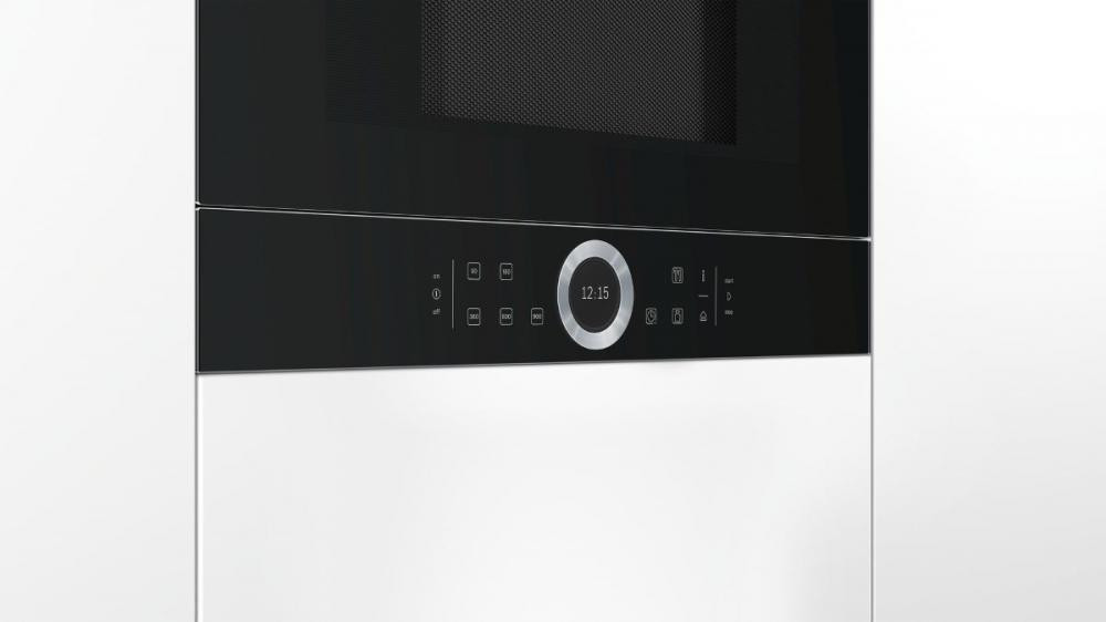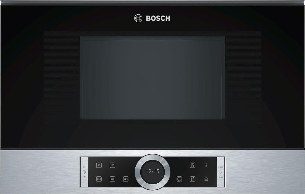 Мікрохвильова піч Bosch BFR634GS1 - це ідеальне рішення для вашої кухні, поєднуючи сучасний дизайн та високі технології. Вбудована конструкція з розмірами 59,4х38,2х31,8 см вміщує камеру об'ємом 21 л, що дозволяє з легкістю готувати різноманітні страви.