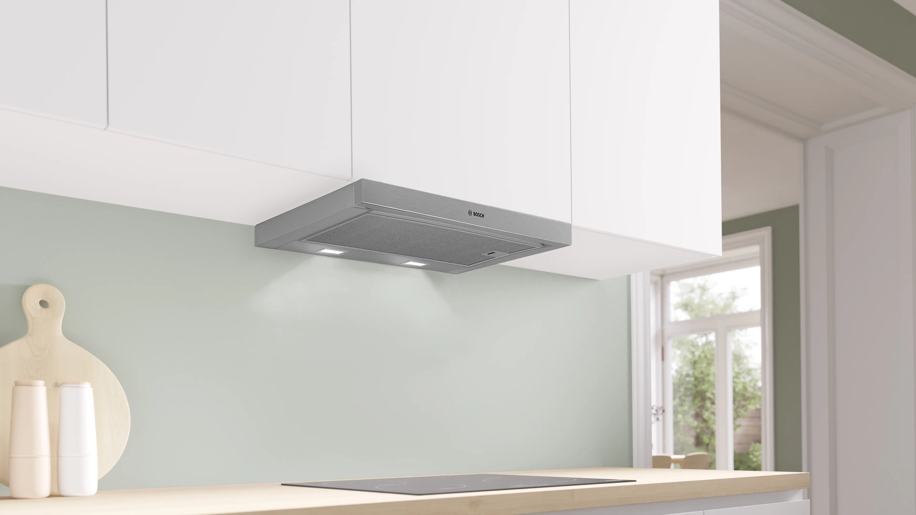 Духова витяжка Bosch DFL063W56 - ідеальне рішення для вашої кухні, яке поєднує в собі стильний дизайн та високі технології. Цей вбудований пристрій має ширину 60 см і виконаний у сучасному срібному кольорі, що додає елегантності вашому інтер'єру.