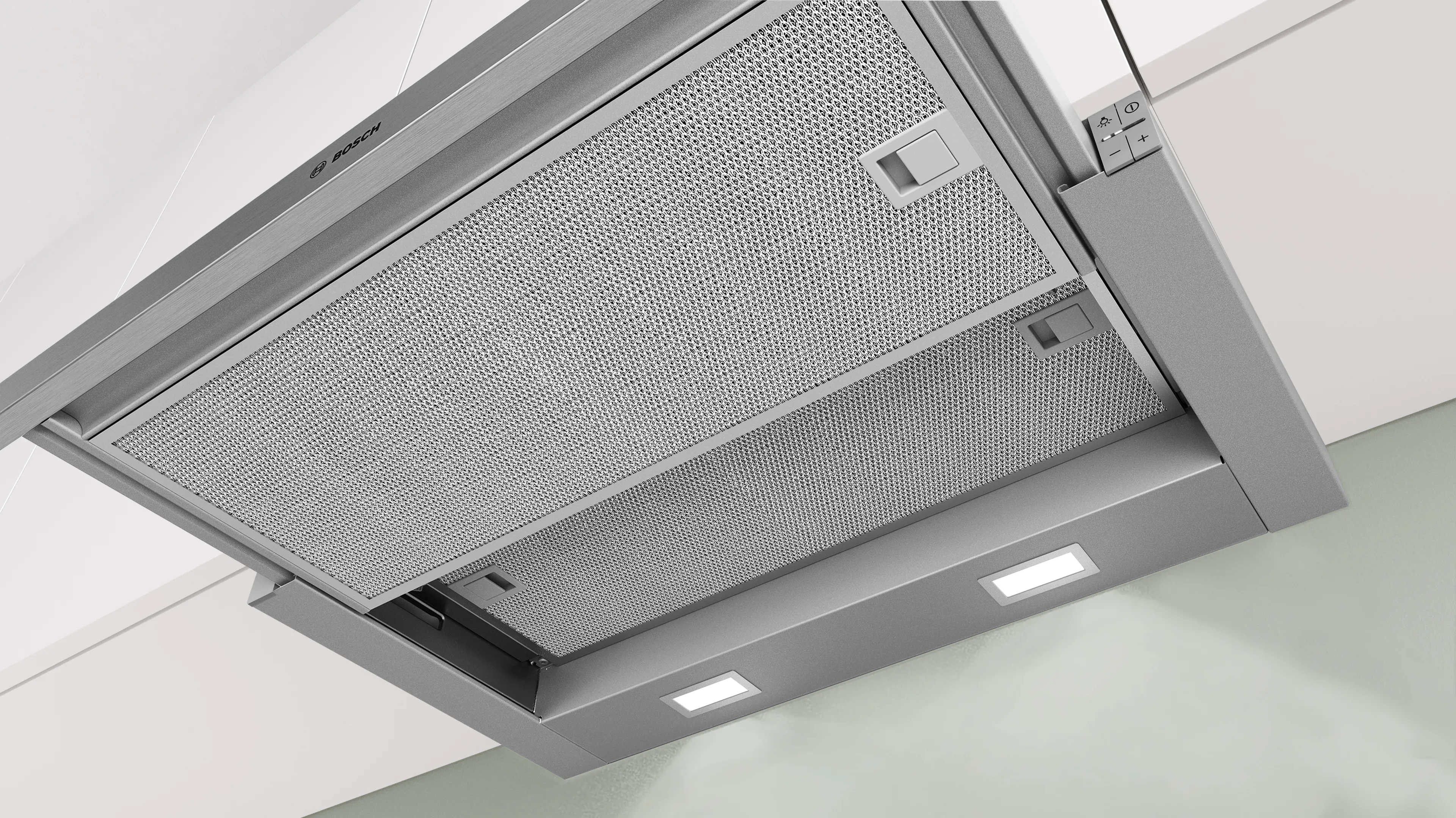 Додатково, витяжка Bosch DFL064A52 має два LED-освітлення з загальною потужністю 4 Вт, що забезпечує достатнє освітлення робочої поверхні. Фільтри з алюмінію легко чистяться, що спрощує догляд за пристроєм та гарантує довгий термін служби.