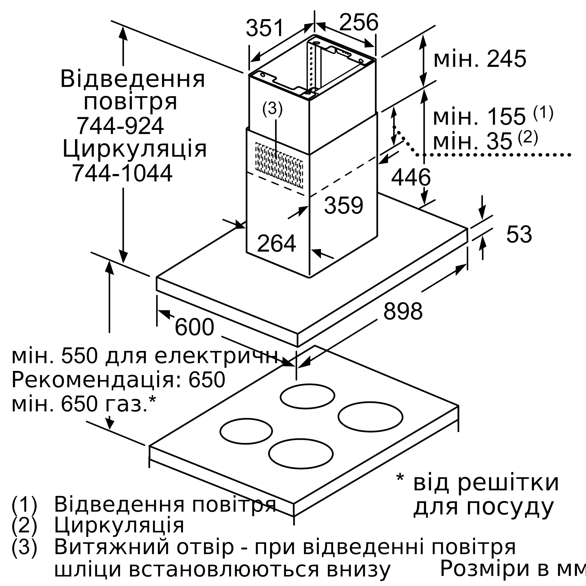 Шум під час роботи на максимальній швидкості складає 57 dB, що є досить помірним показником, а у режимі рециркуляції гучність зростає до 67 dB. Витяжка працює на 250 Вт і має клас енергетичної ефективності B, що дозволяє заощадити на електроенергії та зменшити витрати.