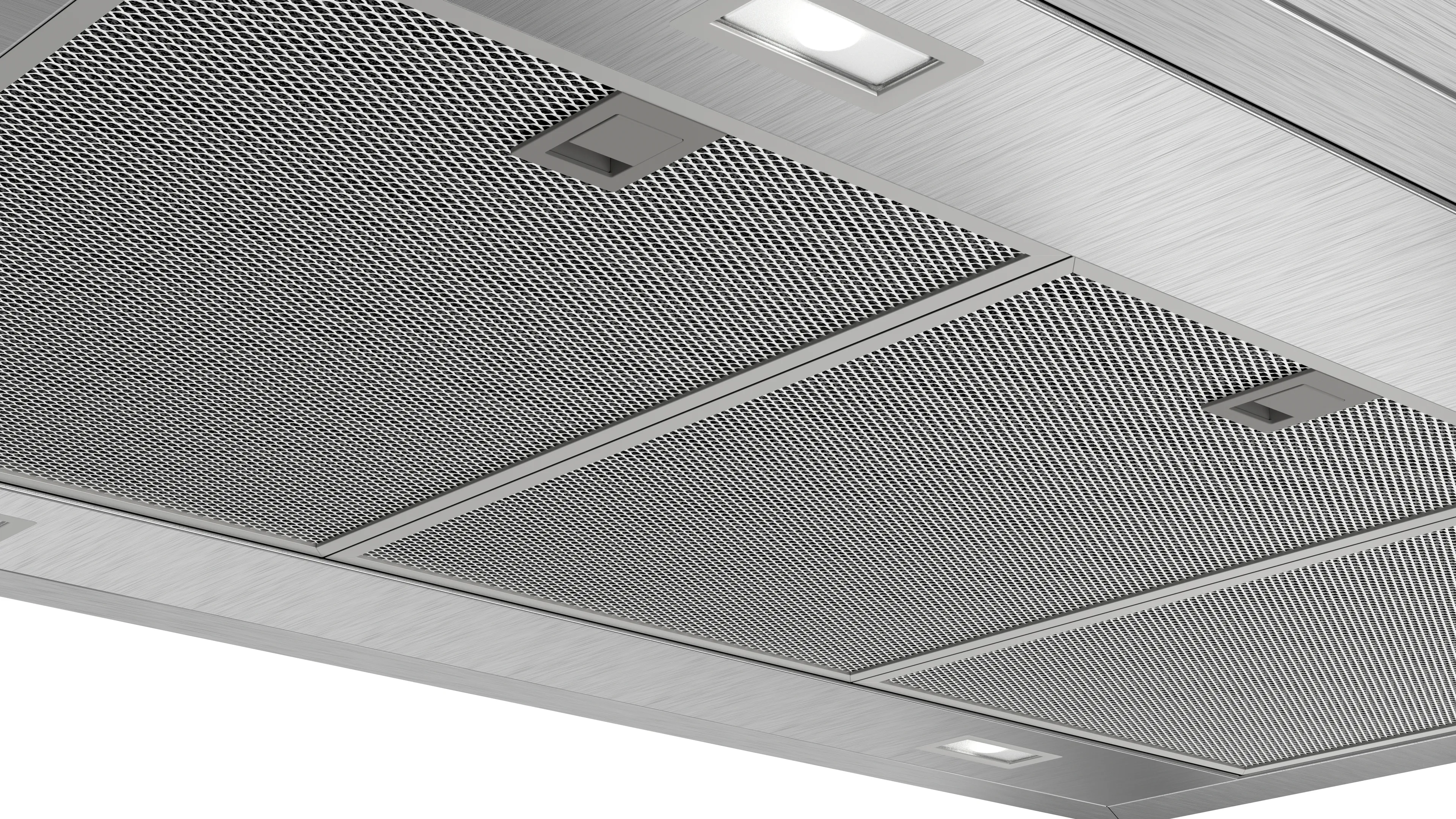 Фільтр від жиру виготовлений з алюмінію, що дозволяє легко його мити. Витяжка має ширину 90 см і вимагає мінімальної відстані 550 мм над електричною плитою та 650 мм над газовою. Діаметр витяжного отвору становить 150 / 120 mm, що забезпечує універсальність у встановленні.