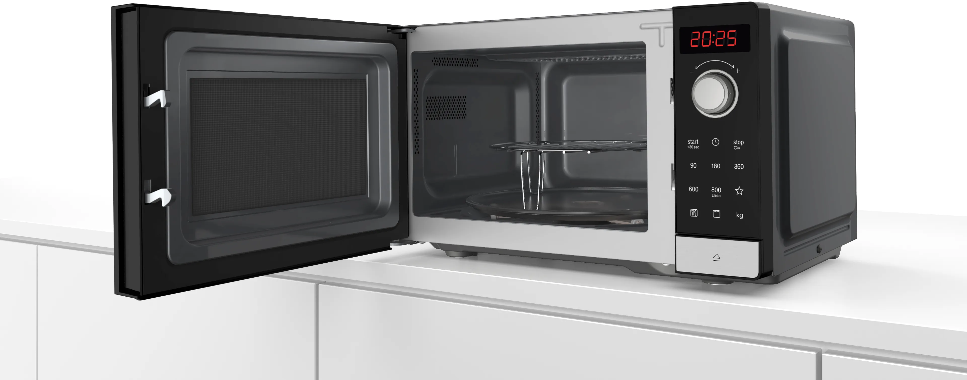 Мікроволнова піч Bosch FEL023MS1 - це сучасний окремовстановлювальний прилад з об'ємом 20 літрів, який поєднує в собі стильний дизайн і функціональність. Корпус виконаний з нержавіючої сталі, що не тільки надає естетичний вигляд, але й забезпечує надійність та легкість в обслуговуванні.