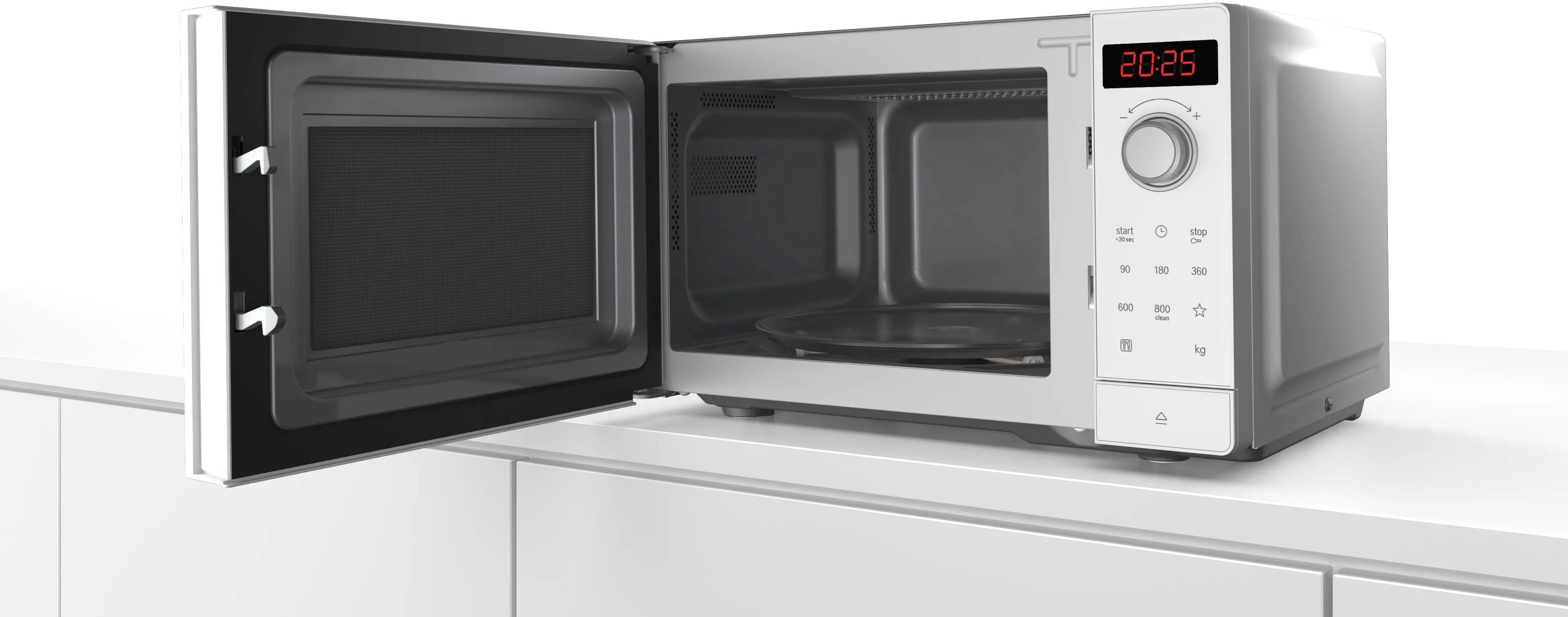 Мікроволнова піч Bosch FFL023MW0 - це ідеальний помічник на кухні, що поєднує в собі стильний дизайн та сучасні технології. З габаритами 260x442x345 мм і об'ємом 20 л, ця модель займає мінімум місця, але забезпечує максимальну продуктивність.