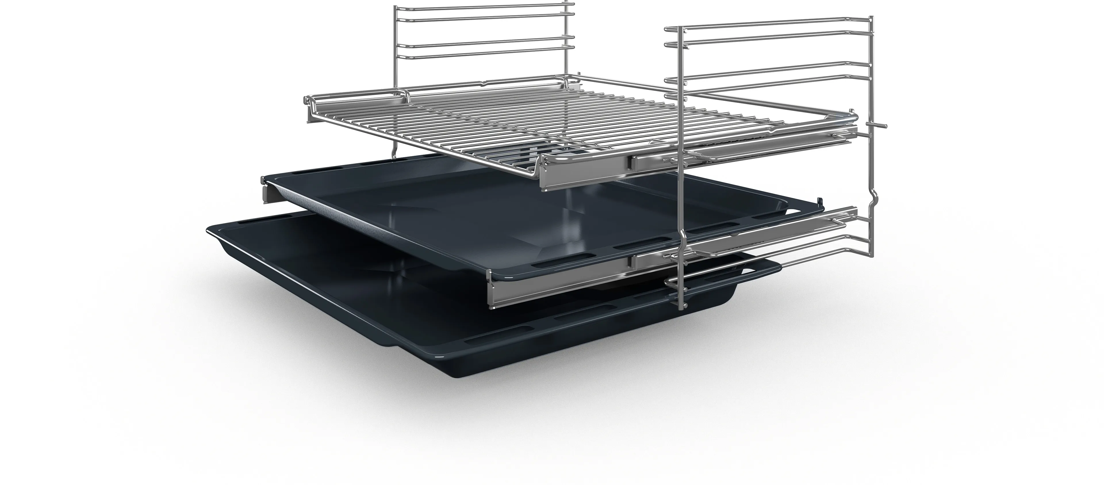 Додатково, духова шафа обладнана **телескопічними направляючими**, що дозволяє легко виймати страви без ризику обпектися. **Дверцята з механізмом плавного зачинення** гарантують безпечне використання, а блокування від дітей забезпечує додатковий захист.