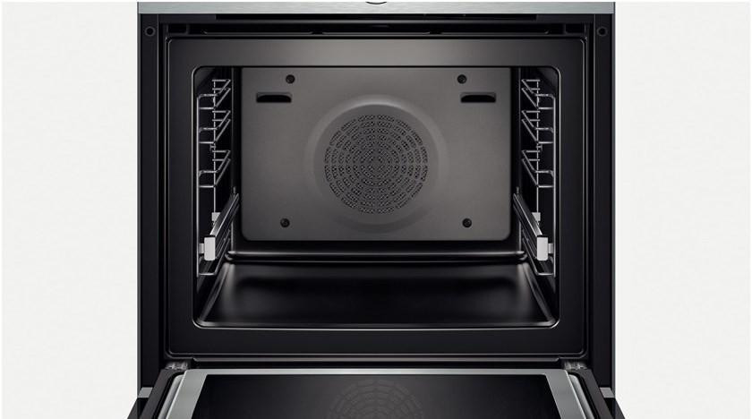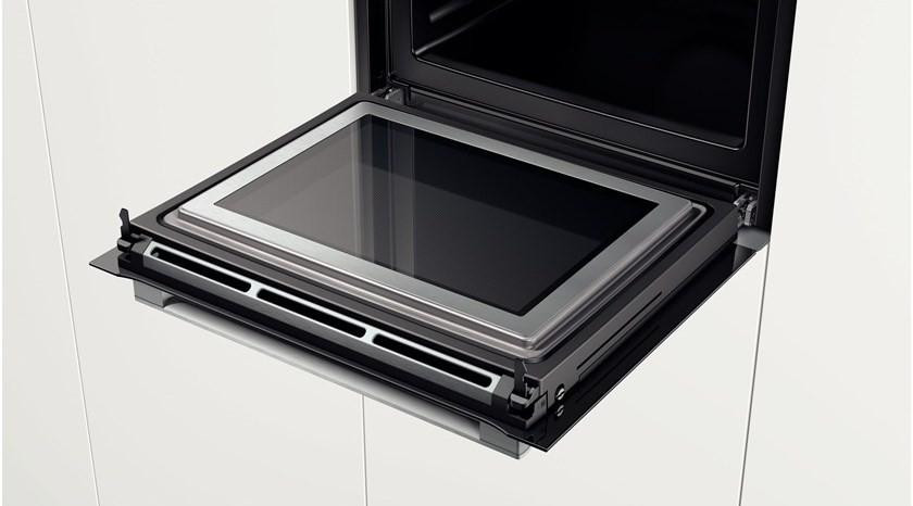 Особливістю цієї духовки є інтегровані технології, такі як датчик PerfectBake, який контролює вологість страви, і зонд PerfectRoast для ідеального приготування м'яса та риби. Додатково, модель оснащена грилем та мікрохвильовою піччю мощністю 800 Вт для комбінованого приготування. Розумна система очищення EcoClean дозволяє значно зменшити час на догляд за приладом.