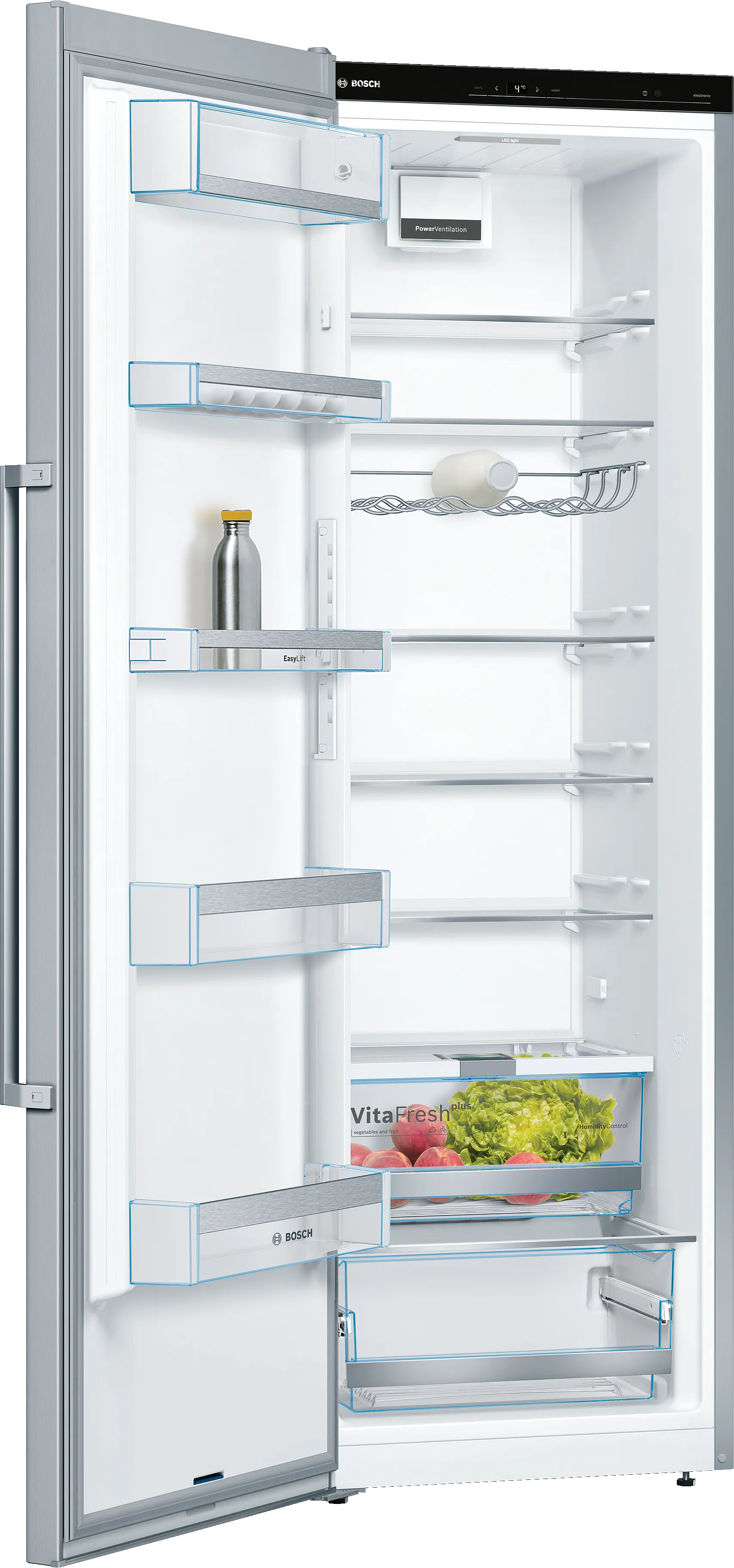 Холодильник обладнаний системою VitaFresh Plus, яка створює ідеальні умови для зберігання свіжих продуктів, продовжуючи їх термін придатності. Завдяки тихому режиму роботи на 39 дБ(A), цей холодильник не порушить атмосферу спокою у вашій оселі. Крім того, можливість подключення до Home Connect дозволяє Вам керувати функціями приладу дистанційно через смартфон, що робить управління ще більше зручним і інноваційним.