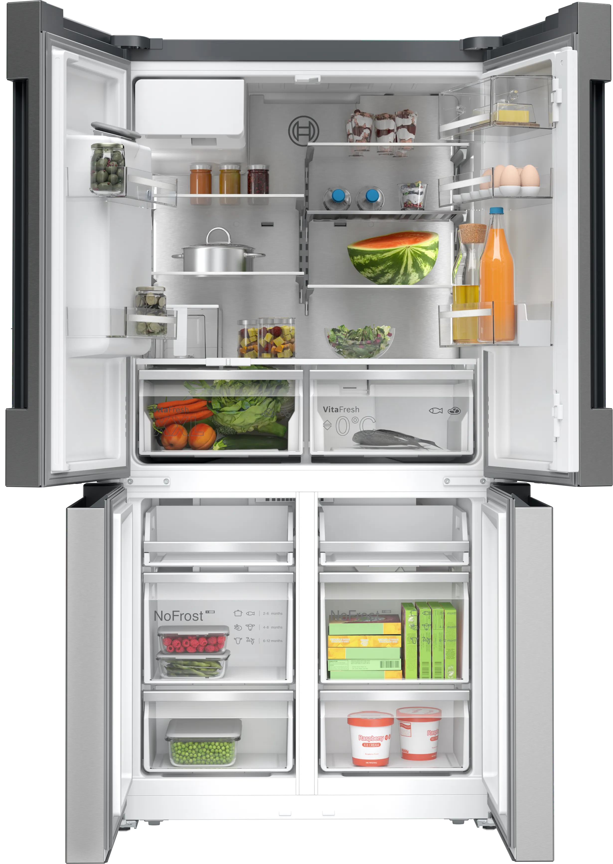 Холодильник Bosch KFI96APEA також обладнано зручним водяним диспенсером, що забезпечує постачання води, льоду чи кубиків льоду. Завдяки інтуїтивно зрозумілій панелі управління ви можете легко налаштувати всі необхідні функції, в тому числі через мобільний додаток.
