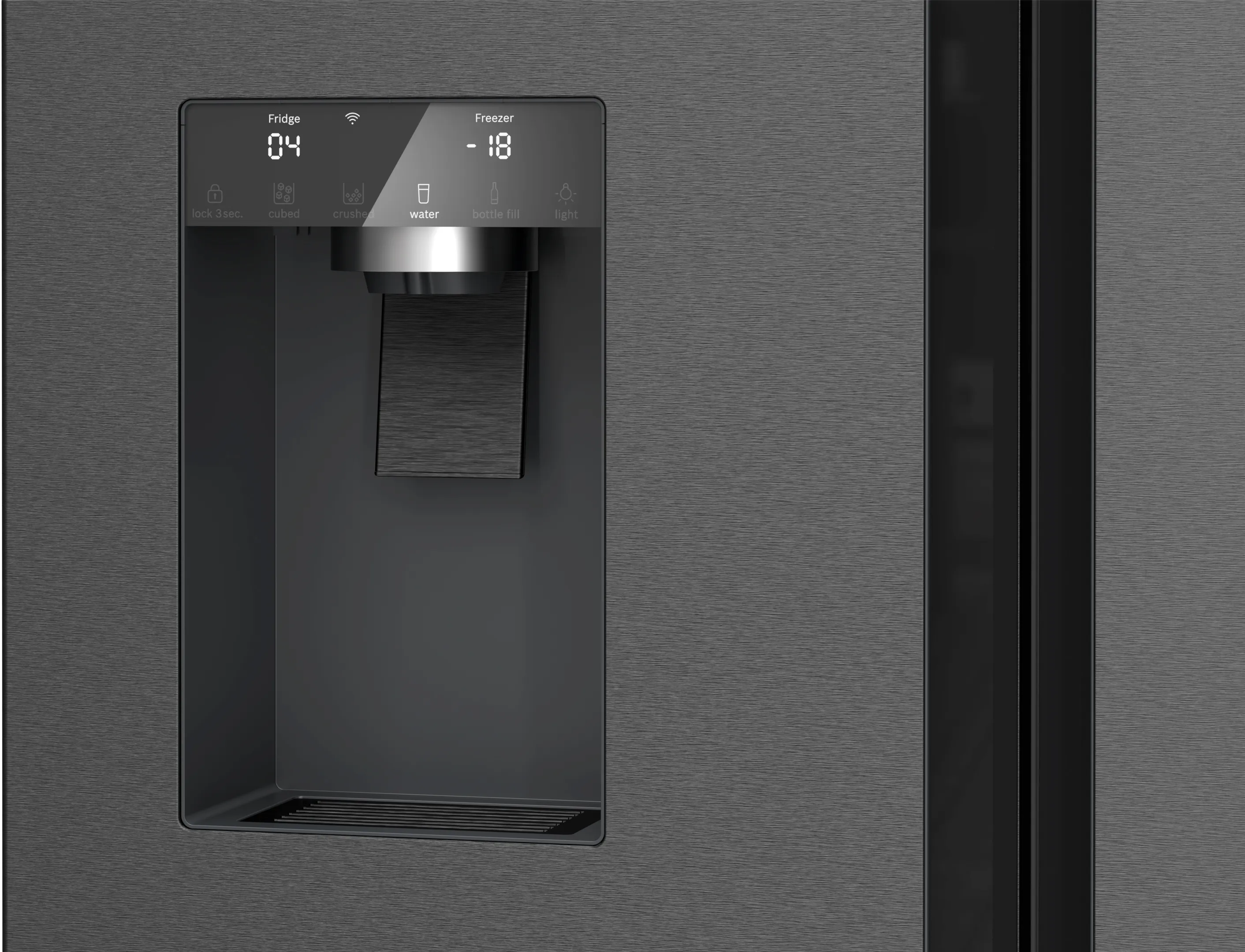 Модель має стильний вигляд, виготовлена з нержавіючої сталі з покриттям AntiFingerprint, що перешкоджає появі відбитків пальців. Завдяки своєму інноваційному дизайну та функціональності, холодильник Bosch KFI96AXEA стане незамінним помічником у вашій кухні.