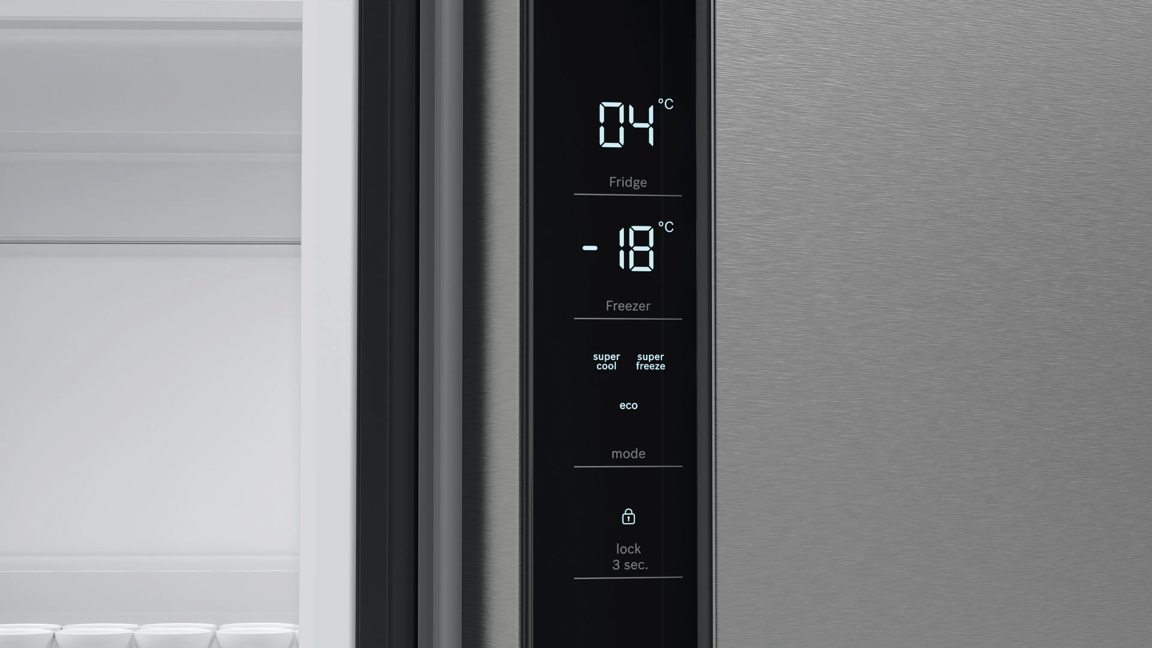 Цей холодильник не тільки тихий - його рівень шуму становить всього 38 дБ, що робить його ідеальним вибором для будь-якого дому. Також, завдяки Home Connect, у вас є можливість пов'язати пристрій з вашим смартфоном та отримувати важливі оновлення. Зручні електронні керування та температурні індикатори забезпечать легкість у користуванні холодильником.