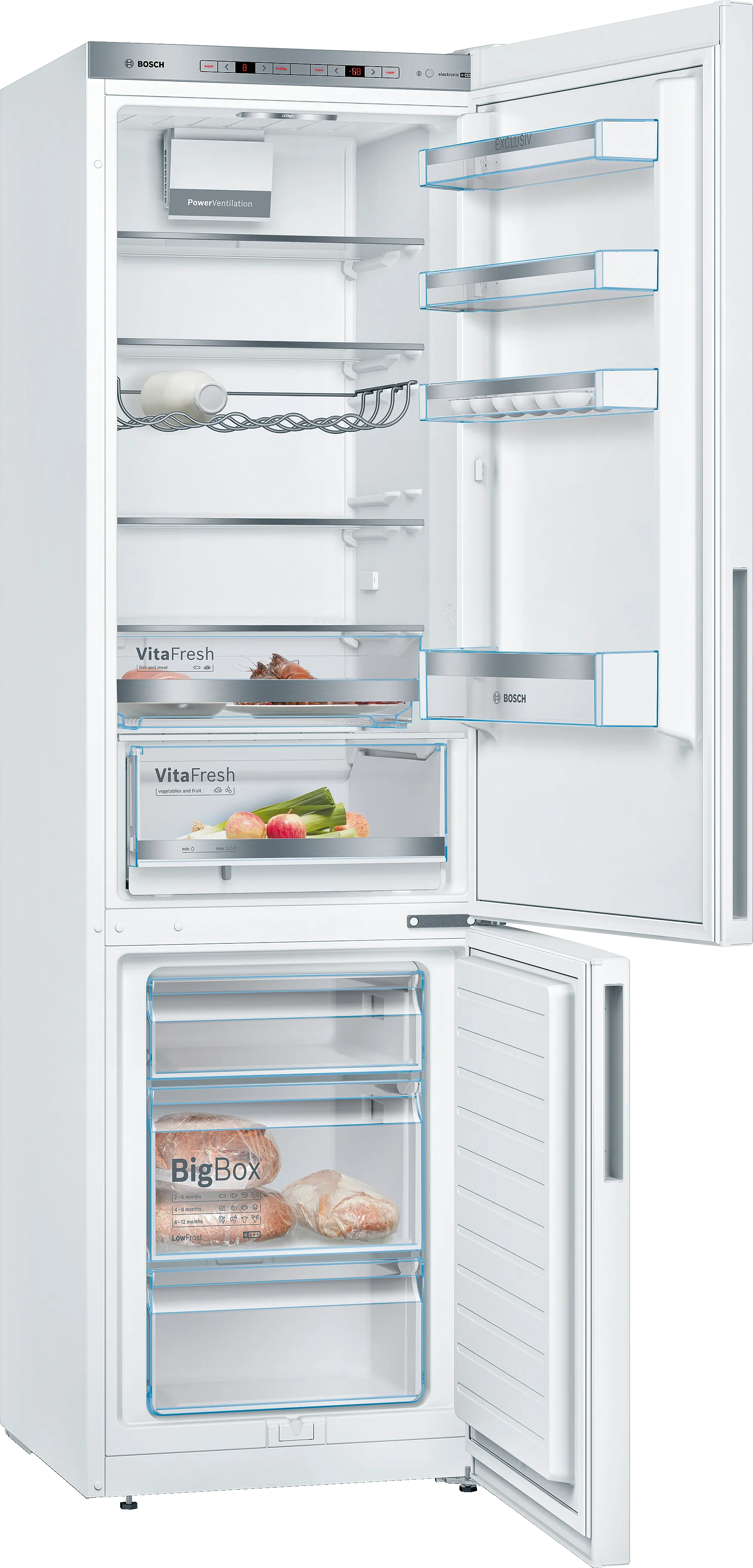 Серед особливостей варто відзначити інноваційні системи VitaFresh Plus та VitaFresh Big Box, які забезпечують тривале зберігання продуктів, зберігаючи їх свіжість і поживність. Холодильник не оснащений автоматичним розморожуванням, але має повідомлення про відкриті двері та сигналізацію щодо поломки морозильної камери.