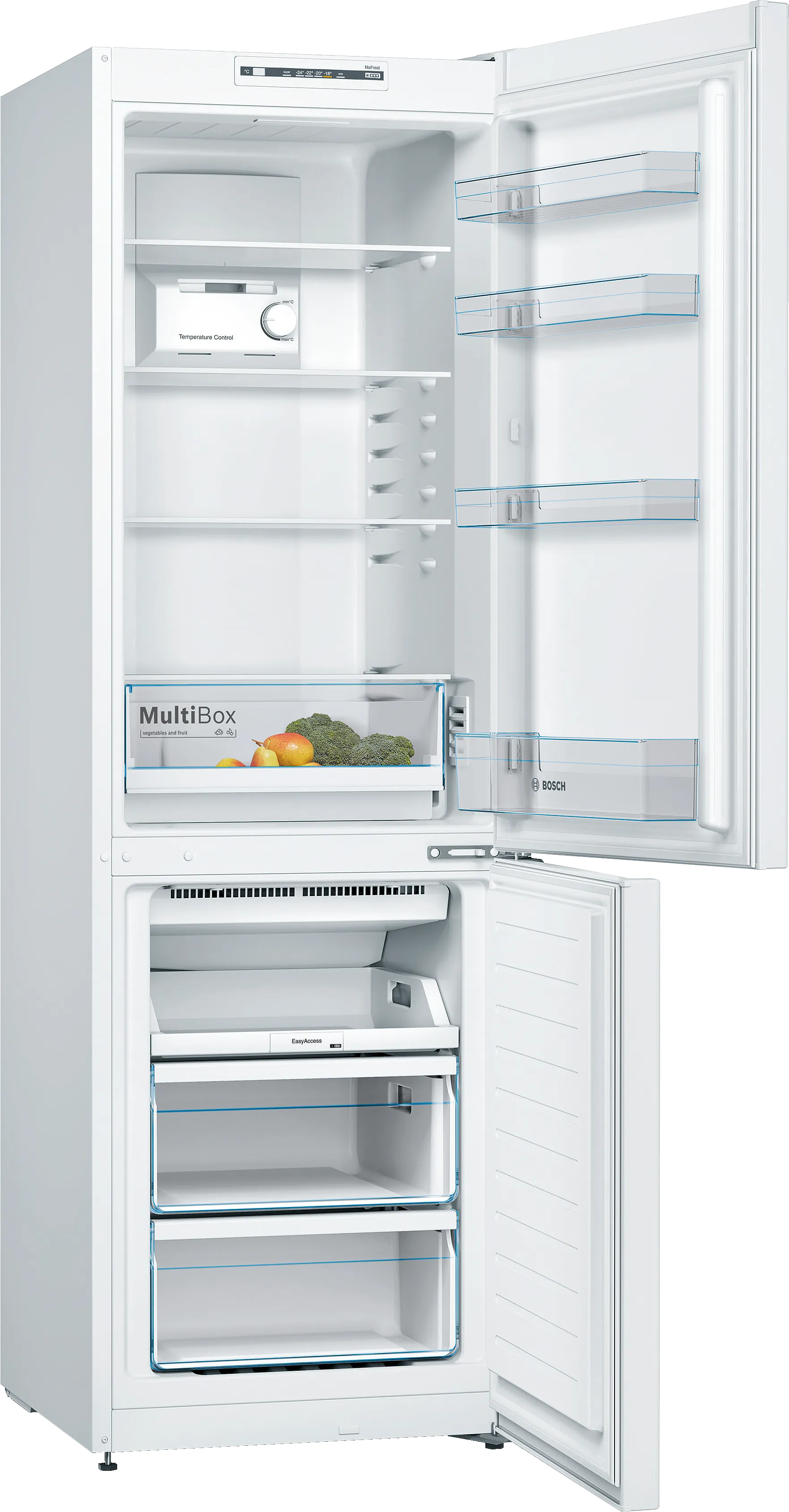 Холодильник Bosch KGN36NWEA – це сучасний прилад з високим рівнем енергоефективності, що належить до класу A. Завдяки своїй елегантній білій забарвленню, він впишеться в будь-який інтер'єр кухні.