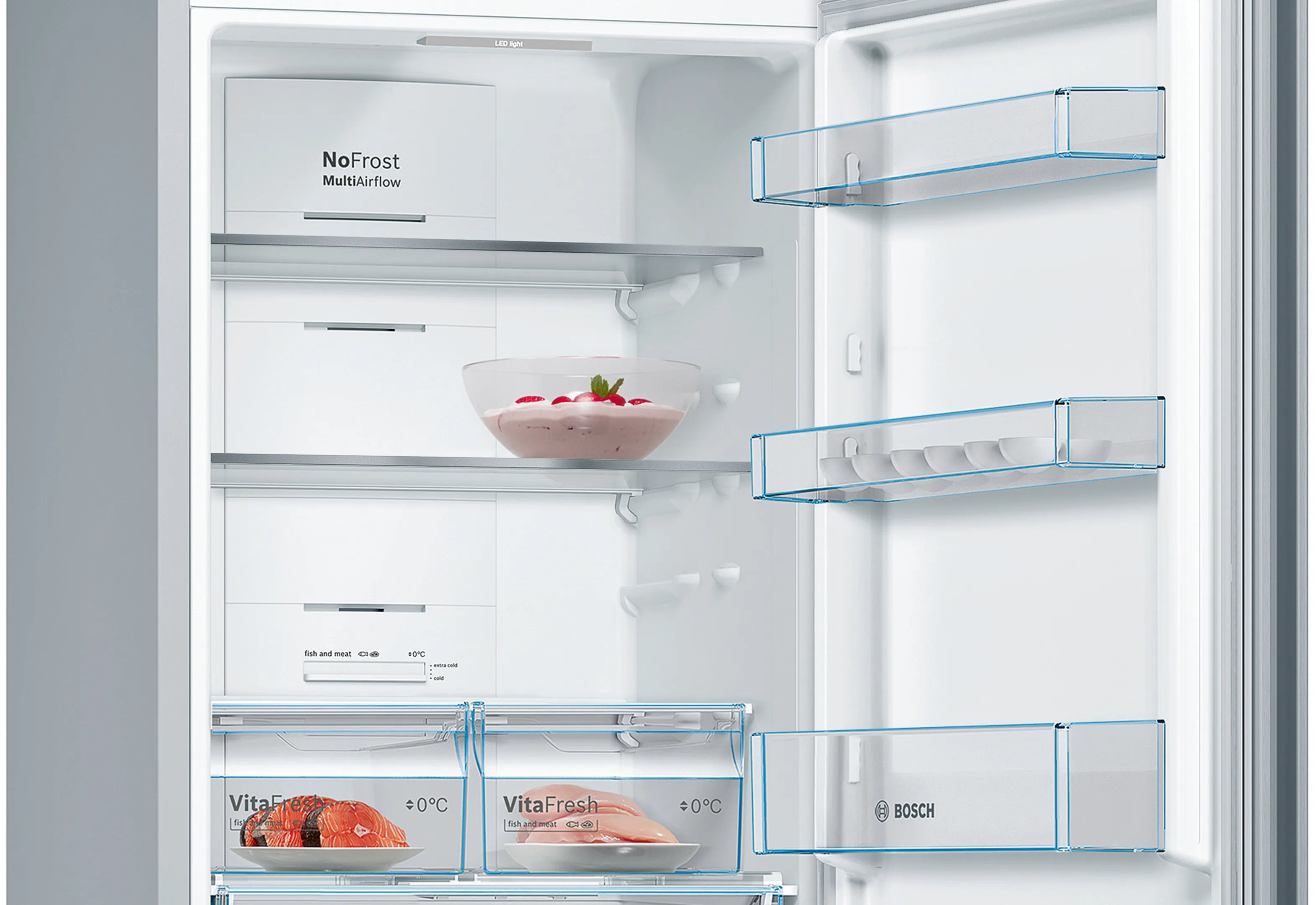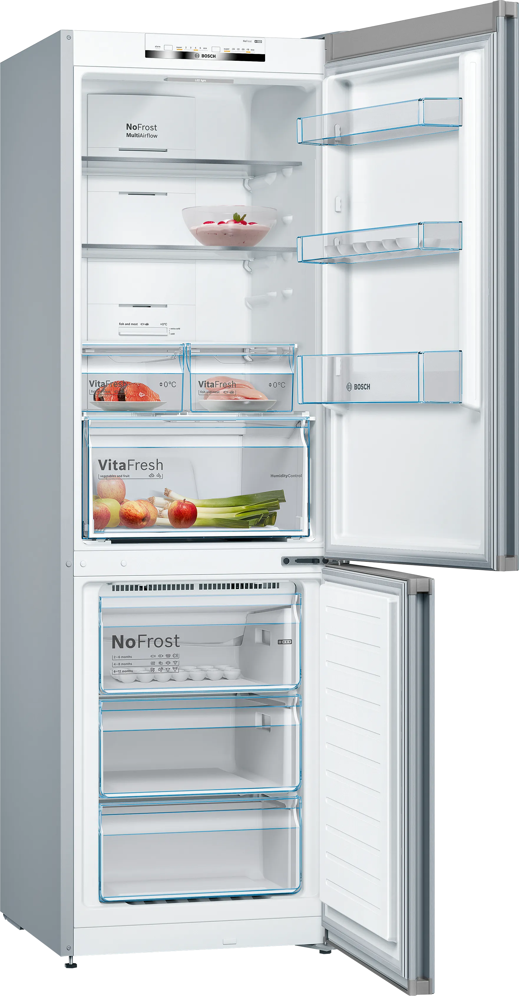 З холодильником Bosch KGN36VL326 ваші продукти завжди залишатимуться свіжими, а енергія - заощадженою, що робить його відмінним вибором для кожної сучасної кухні.