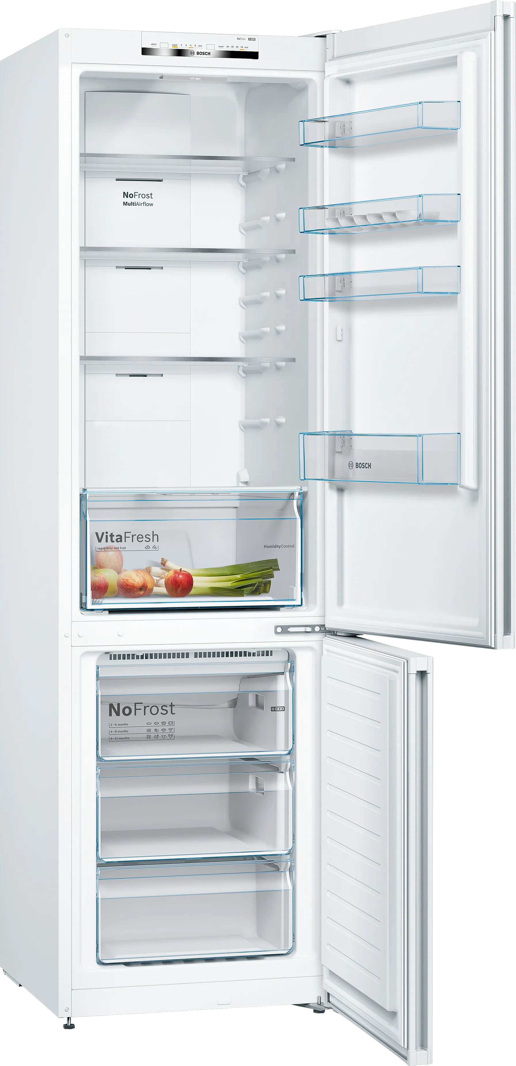 Ця модель обладнана інноваційною системою підтримання свіжості VitaFresh, яка дозволяє зберігати продукти свіжими значно довше, дбаючи про ваше здоров'я та якість харчування. Холодильник має загальний корисний об'єм у 366 літрів з окремими відділеннями для охолодження і заморожування: 290 літрів для холодильної камери та 110 літрів для морозильної.