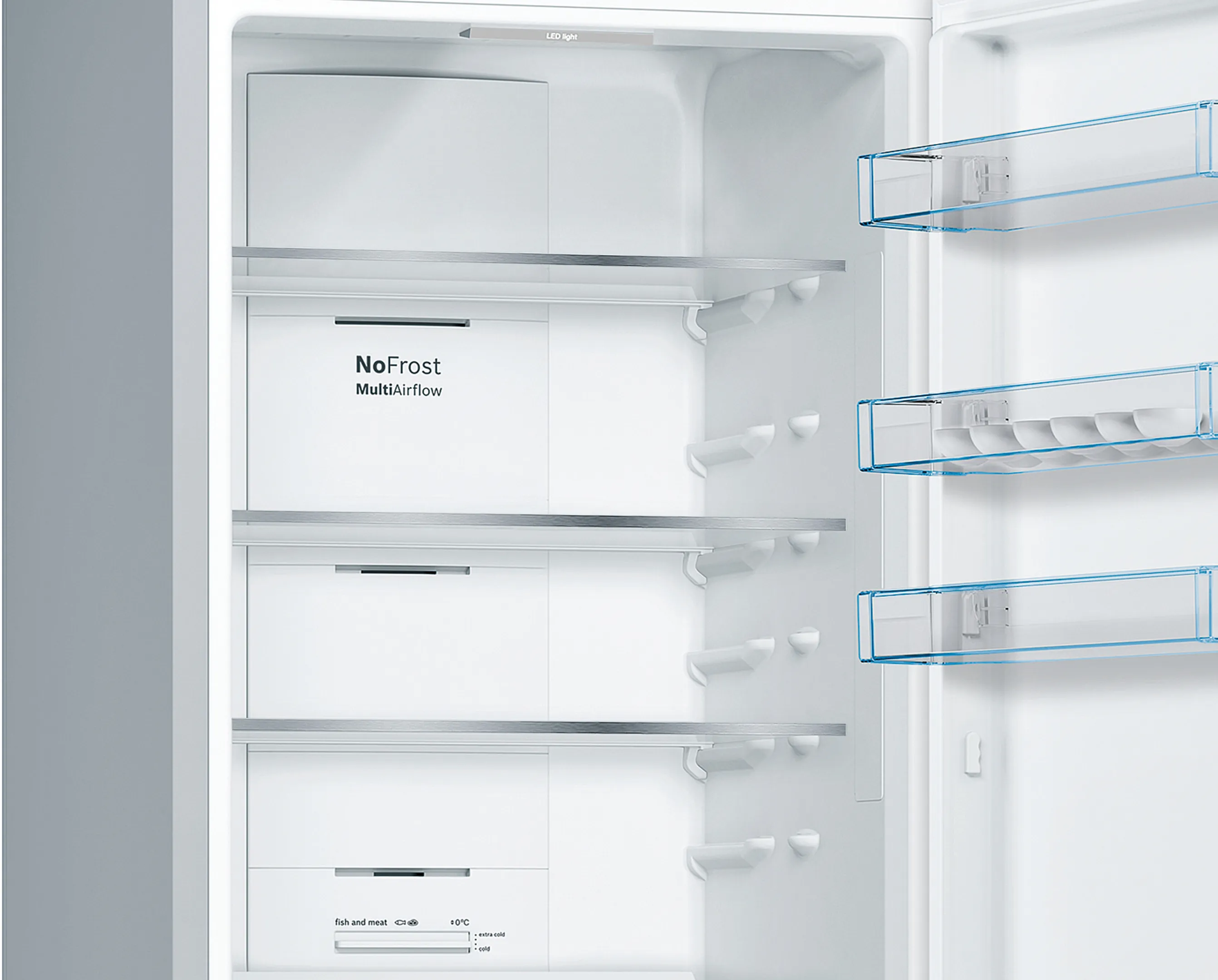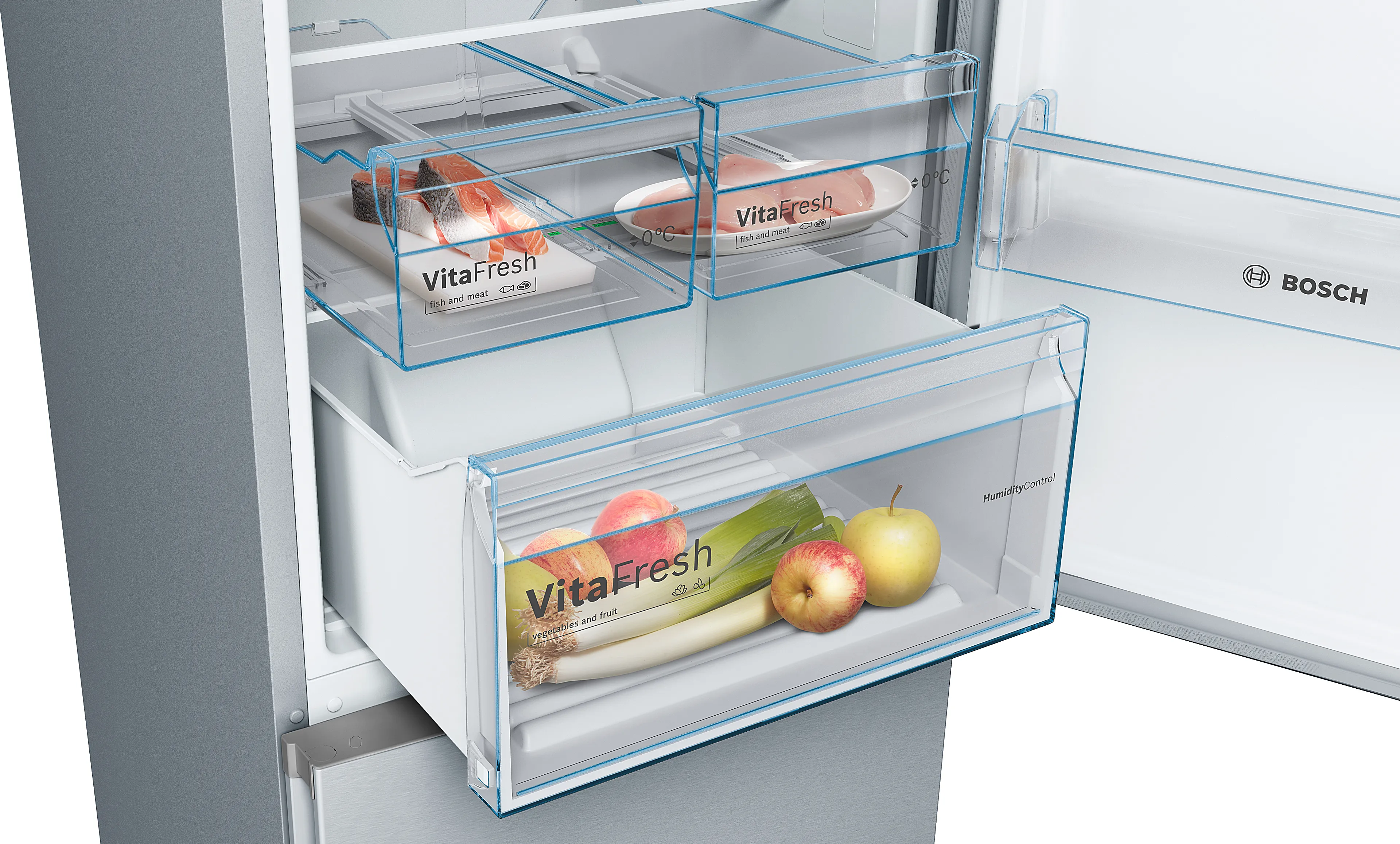 Загальний об'єм холодильника становить 400 л, з яких 290 л відведено для холодильної камери, а 110 л - для морозильної. Оптимізацію свіжості продуктів забезпечує система VitaFresh, що дозволяє зберігати продукти більш тривалий період без втрати їх якості. Крім того, холодильник оснащений режимами швидкого охолодження та швидкого заморожування, що максимально спрощує процес зберігання. Сигнальні функції, такі як індикація температури та сигнал попередження про несправність, також забезпечують безпеку експлуатації.