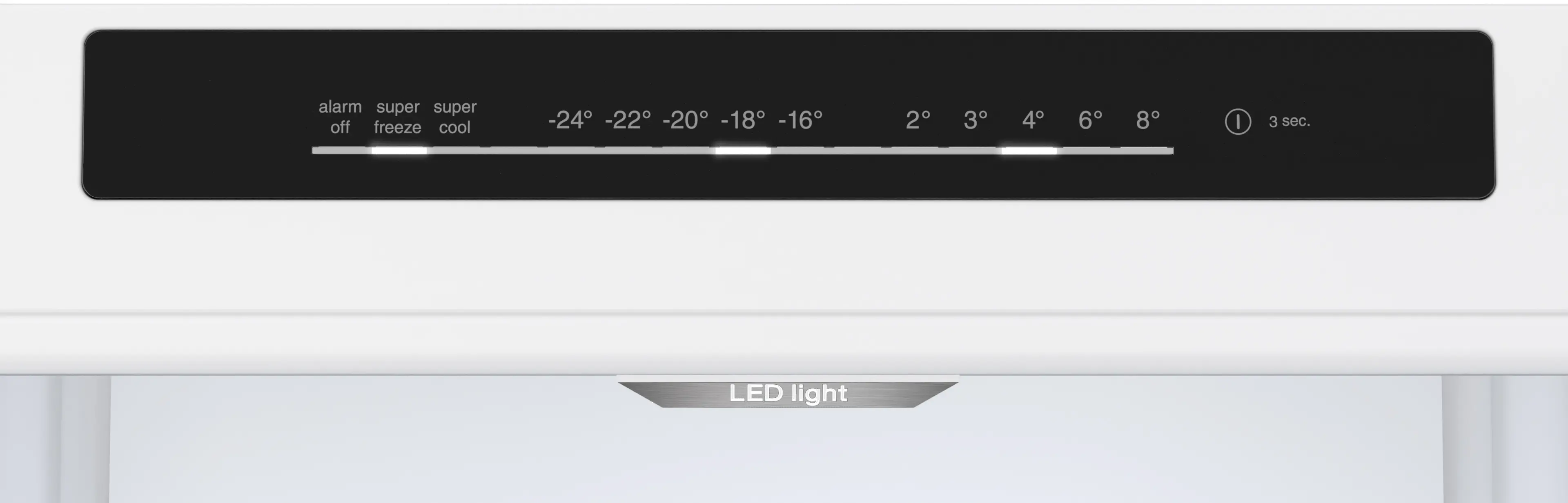 Прилад також характеризується тихою роботою з рівнем шуму лише 35 дБ, що відносить його до класу B за ефективністю шуму. Сенсорні елементи управління, включаючи супершвидке охолодження та заморожування, а також індикатори температури, роблять його використання комфортним і простим.