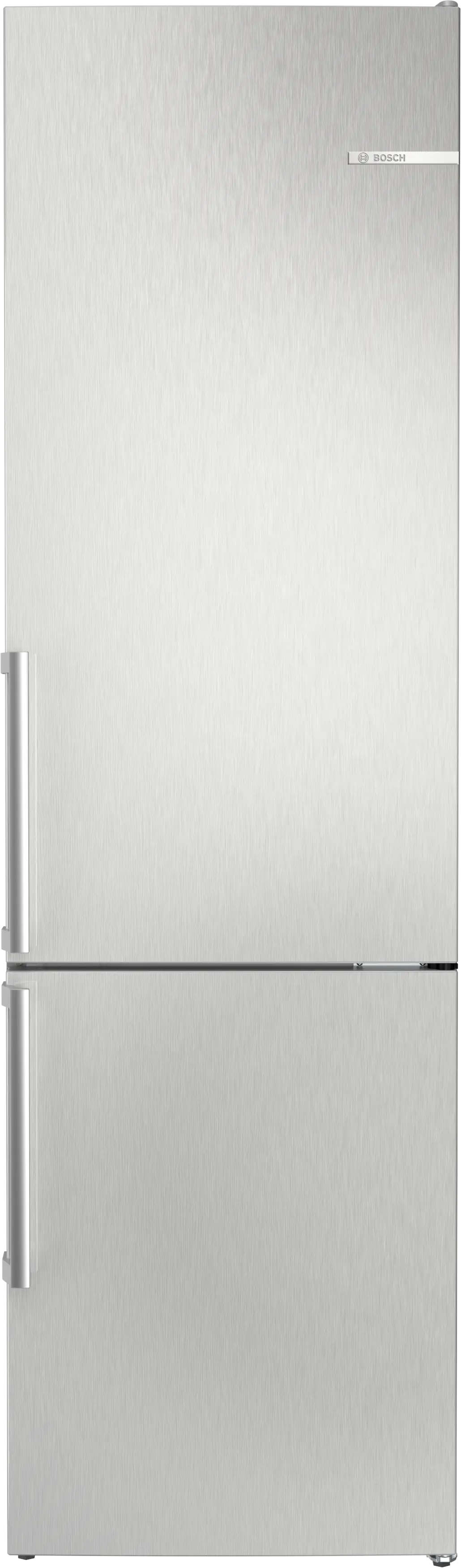 Цей холодильник має стильний металевий вигляд, а двері можуть бути перевішені справа. З ним ви також отримаєте інтегровані аксесуари, такі як і контейнер для льоду, що підвищує його функціональність. Home Connect дозволяє вам отримувати оновлення прямо на ваш смартфон, якщо ваша модель підключена до Інтернету.