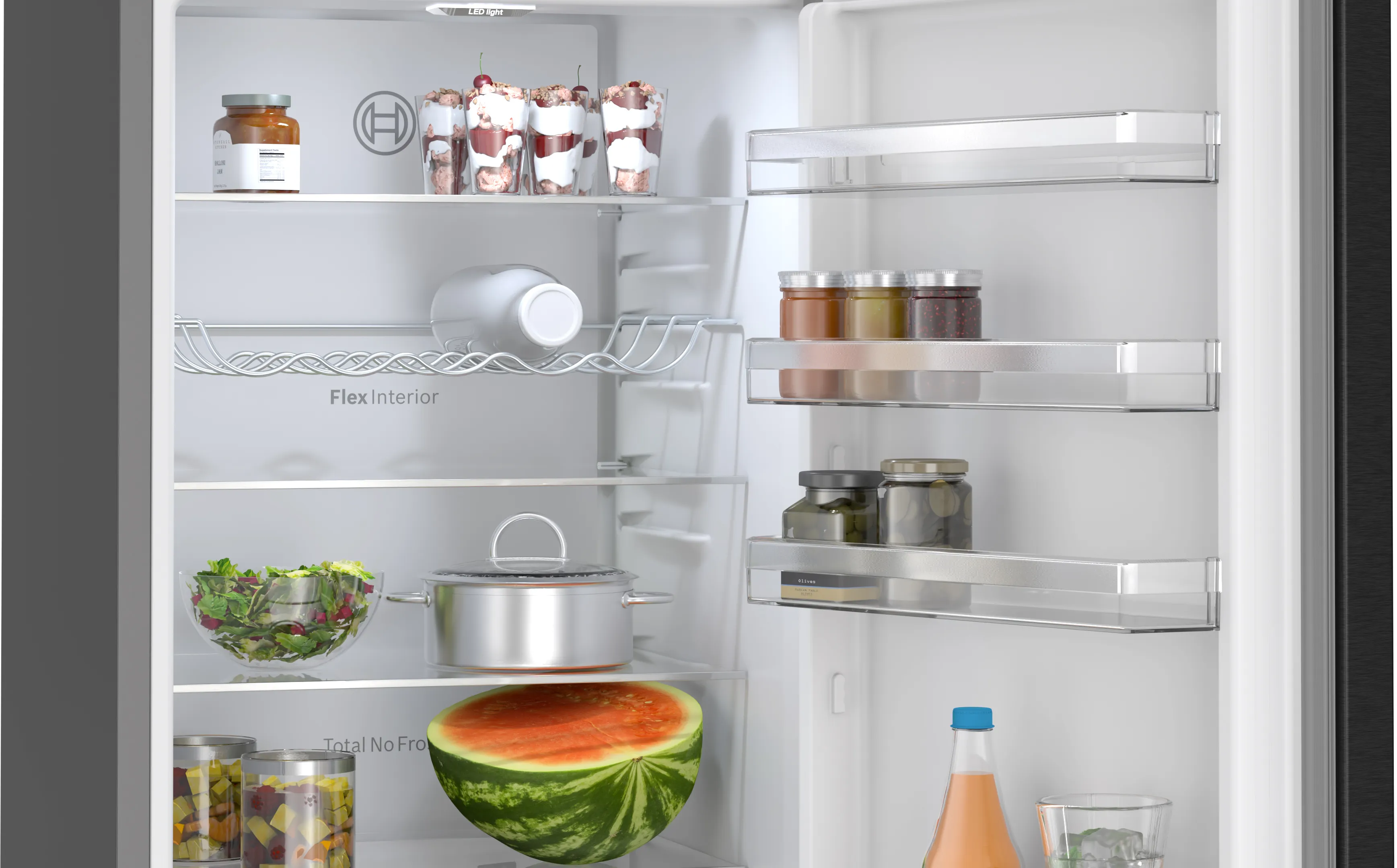 Об'єм холодильного відділу становить 260 літрів, а морозильного — 103 літри, що робить його ідеальним вибором для сімей. Технологія Total No Frost виключає потребу в ручному разморожуванні, забезпечуючи стабільний температурний режим та запобігаючи утворенню криги. Система VitaFresh Plus дозволяє зберігати свіжість фруктів та овочів довше, гарантуючи їхнє тривале зберігання.