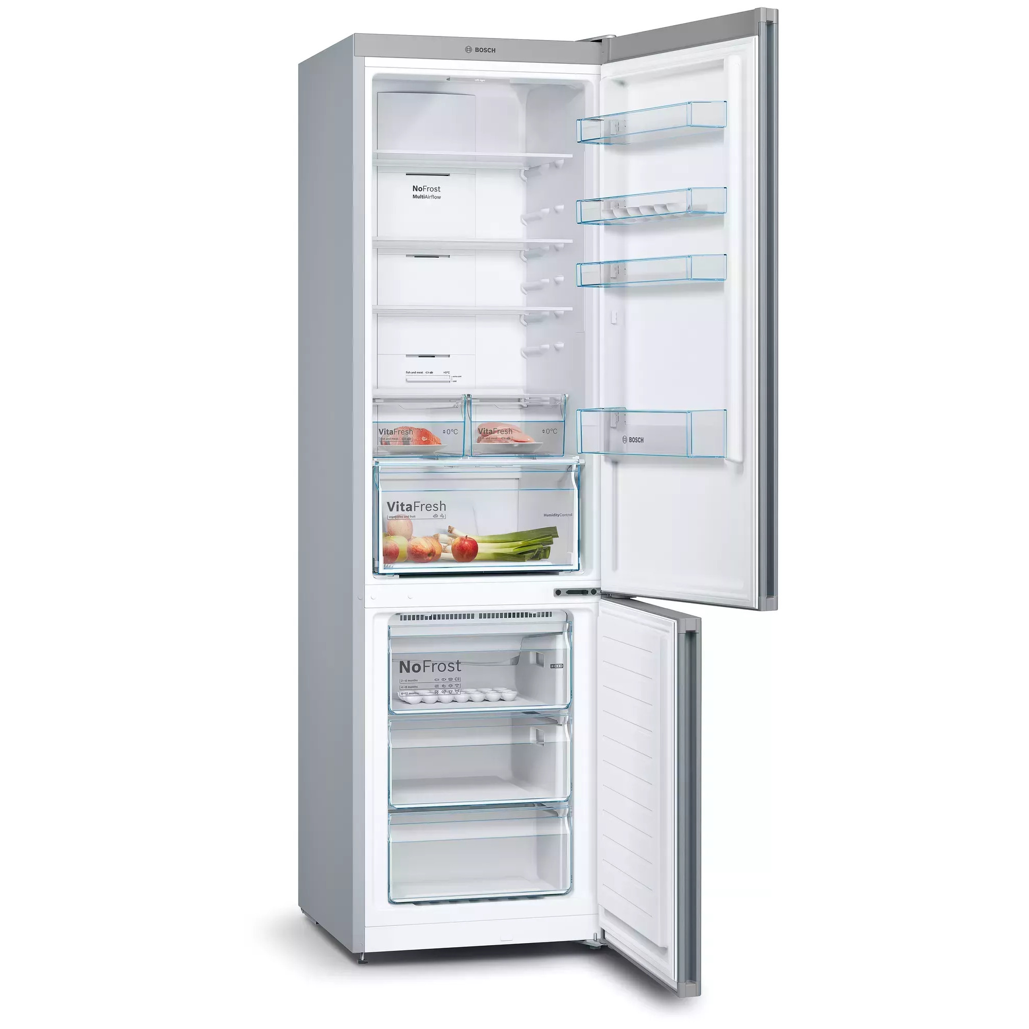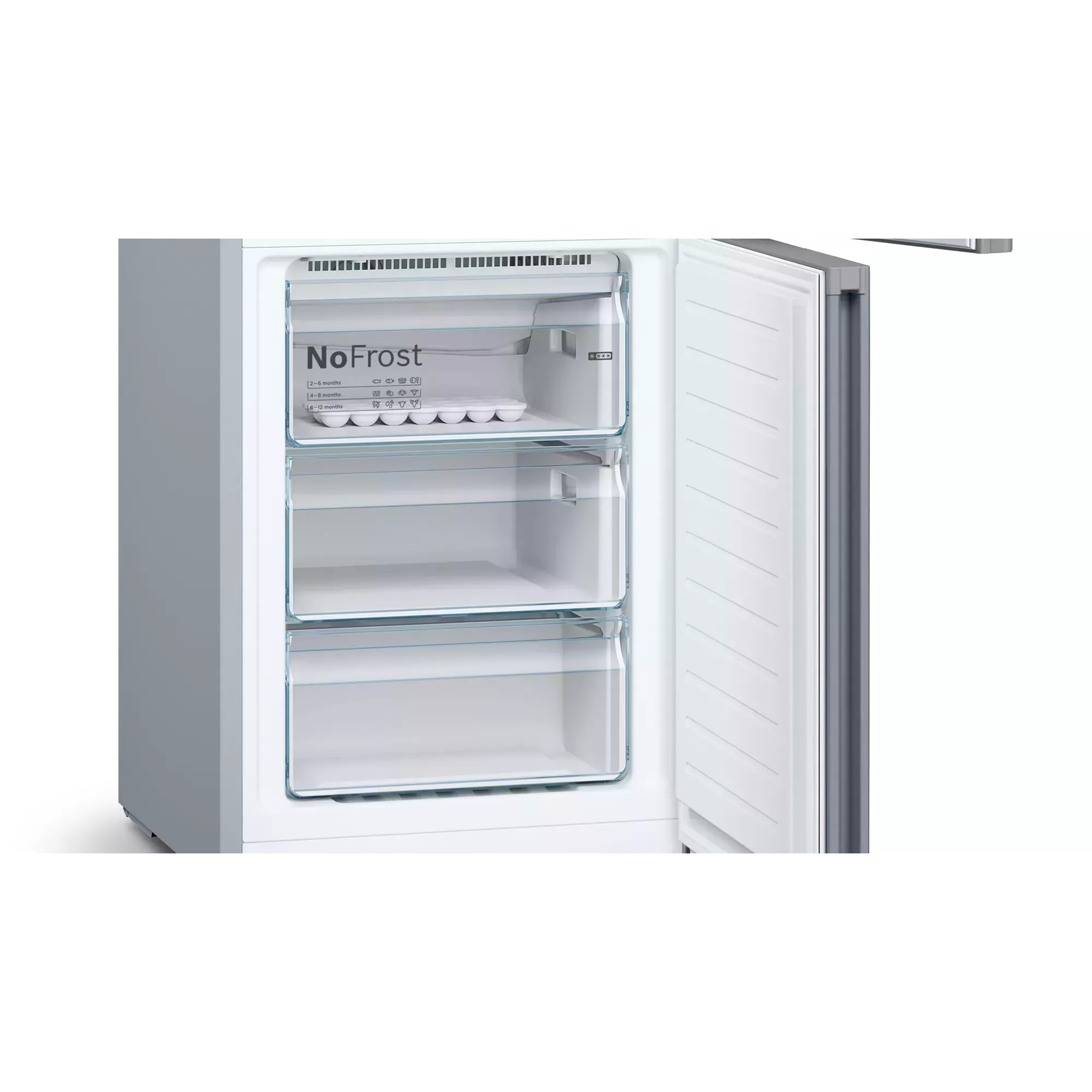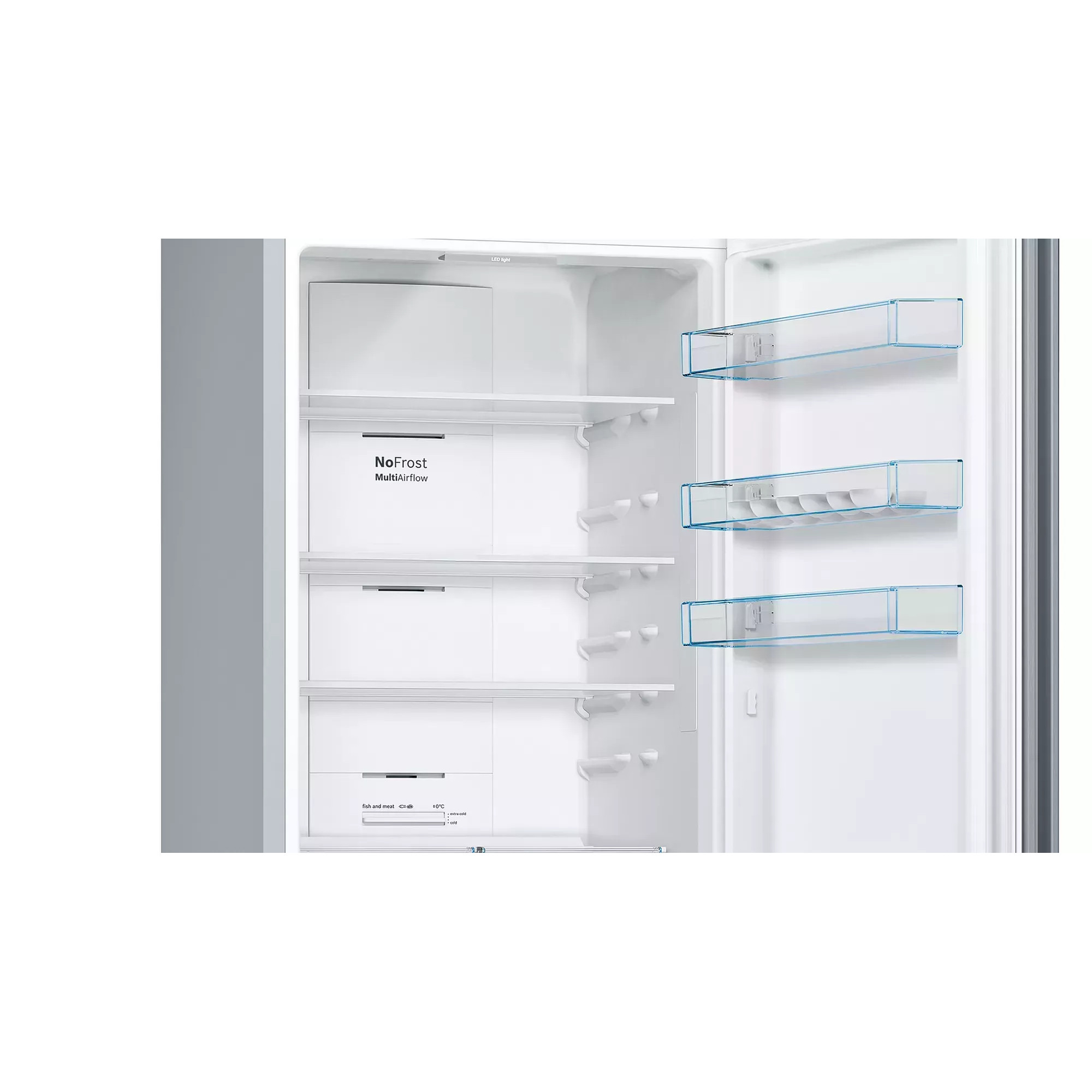 Холодильник Bosch KGN39XL316 — це сучасний прилад із **двокамерною конструкцією**, виконаний в елегантному сріблястому кольорі, що забезпечує надійне зберігання ваших продуктів. Його **об'єм холодильної камери становить 279 літрів**, а морозильна камера вміщує до 87 літрів. Переваги холодильника доповнює система **No Frost**, яка запобігає утворенню інею та полегшує догляд за пристроєм.