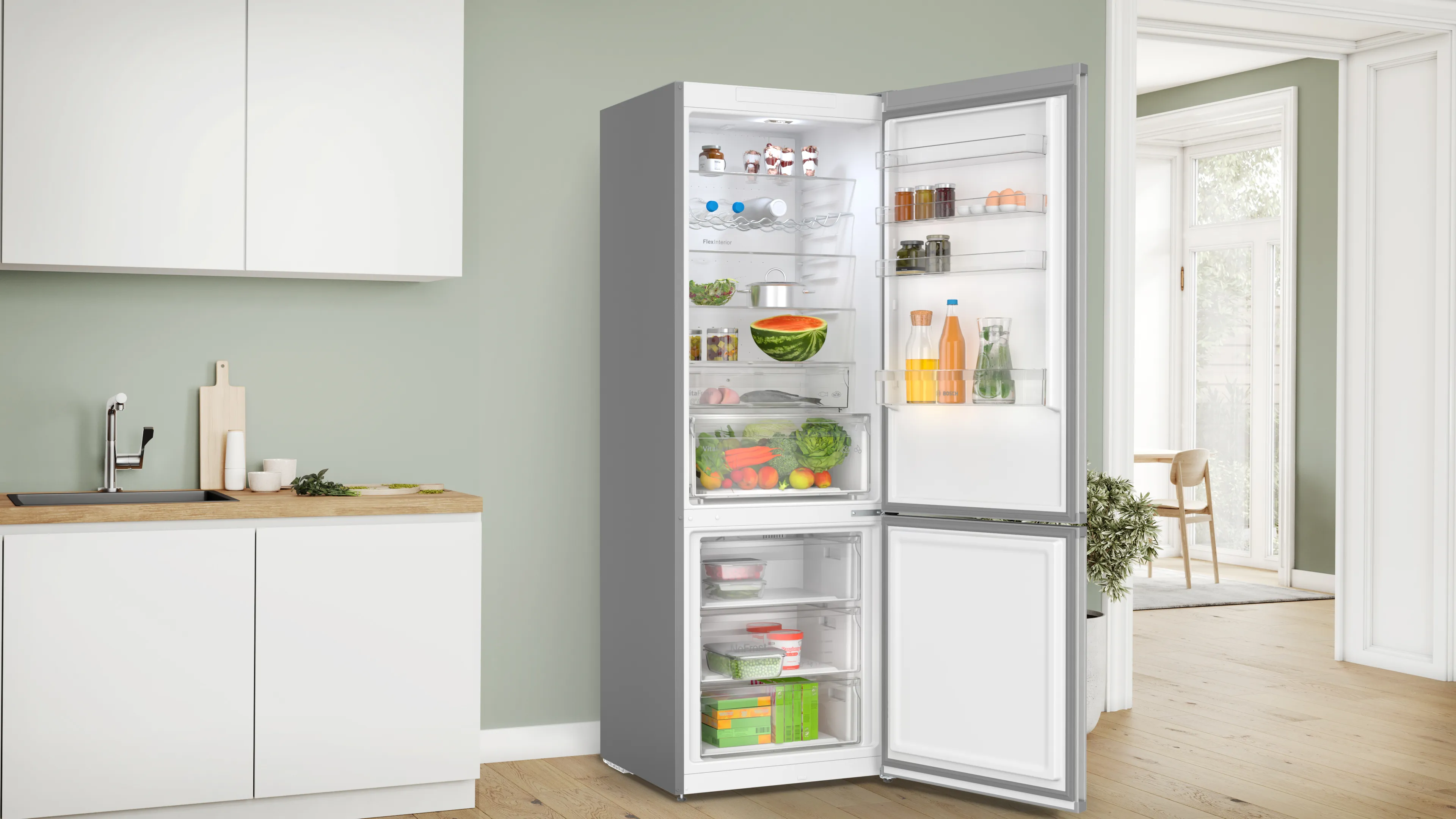 Однією з ключових особливостей є система Total No Frost, яка запобігає утворенню інею, зберігаючи свіжість продуктів. Холодильник також обладнаний новим VitaFresh Plus та VitaFresh Big Box, які допомагають зберігати продукти довше, зберігаючи їх натуральний смак і корисні властивості.
