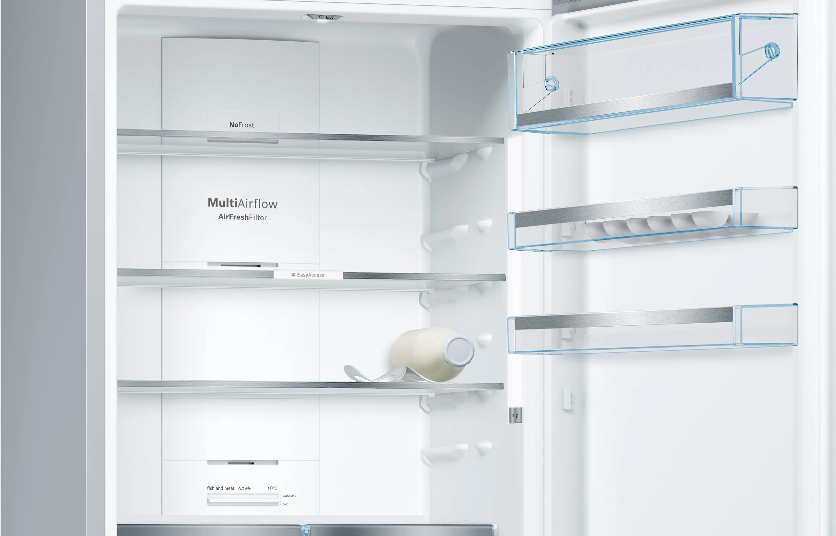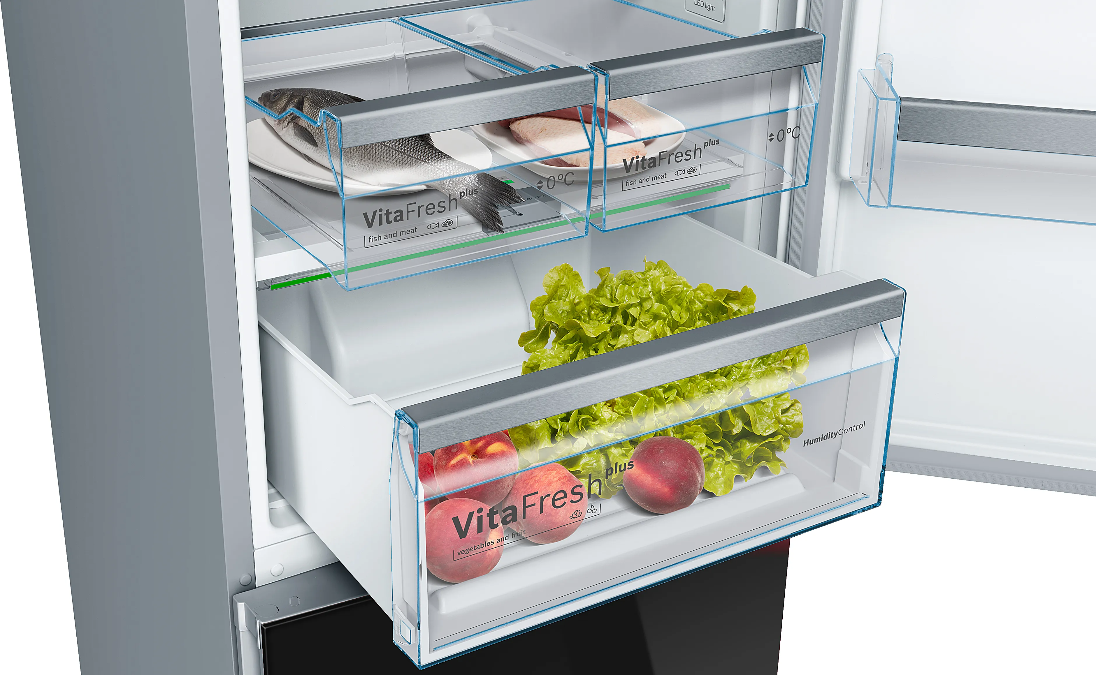 Холодильник Bosch KGN49LB30U - це ідеальне рішення для будь-якої сучасної кухні, поєднуючи стильний дизайн та високі технології. Прилад виконаний у **чорному** кольорі, що надає йому елегантного вигляду. Завдяки системі **VitaFresh Plus** продукти залишаються свіжими набагато довше, що дозволяє зберегти їхню натуральну якість і смак.