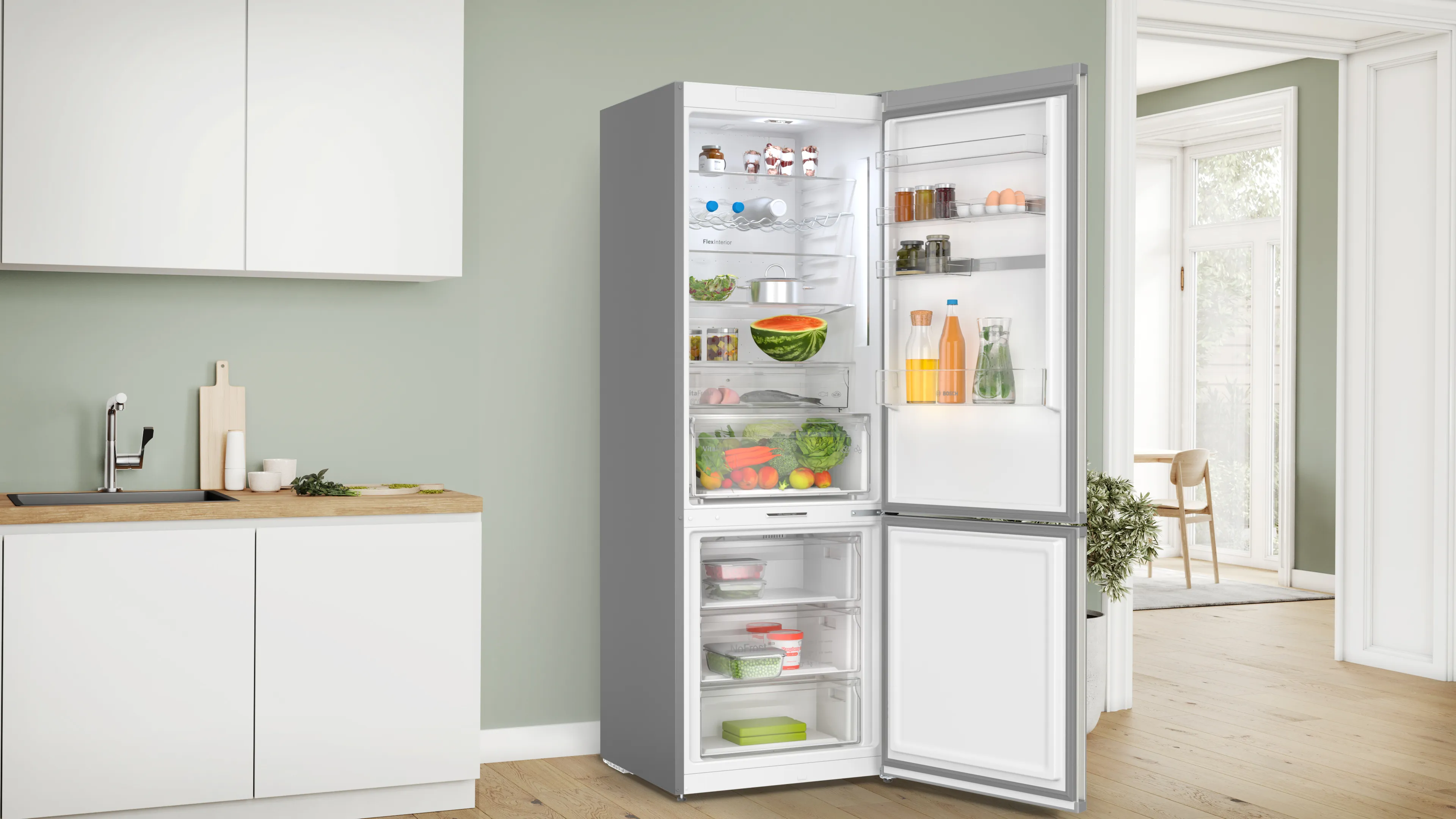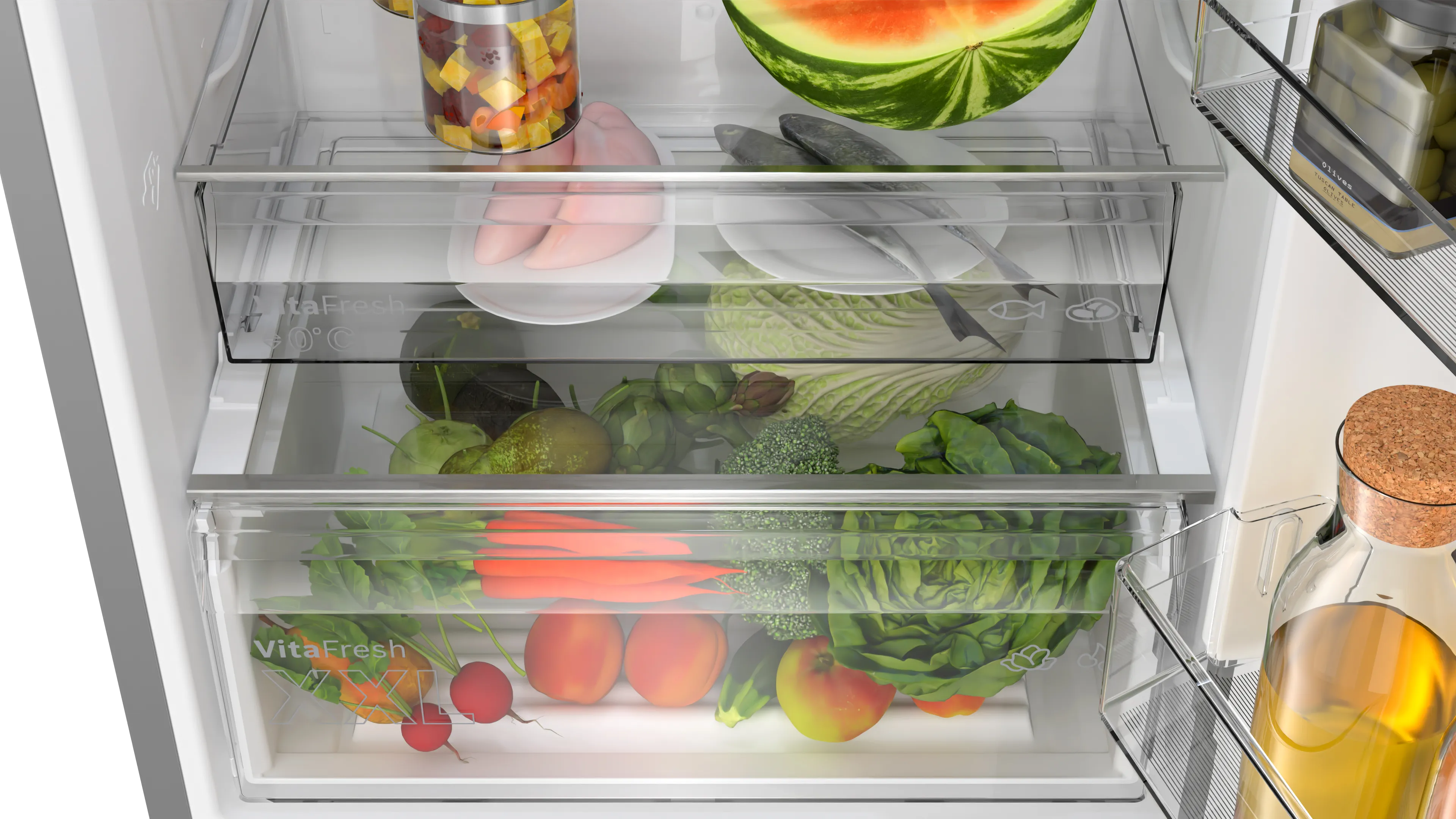 Однією з ключових функцій цього моделі є можливість під'єднання до інтернету завдяки технології Home Connect, що дозволяє отримувати оновлення та контролювати холодильник через спеціальний додаток, що робить його дуже зручним у використанні.