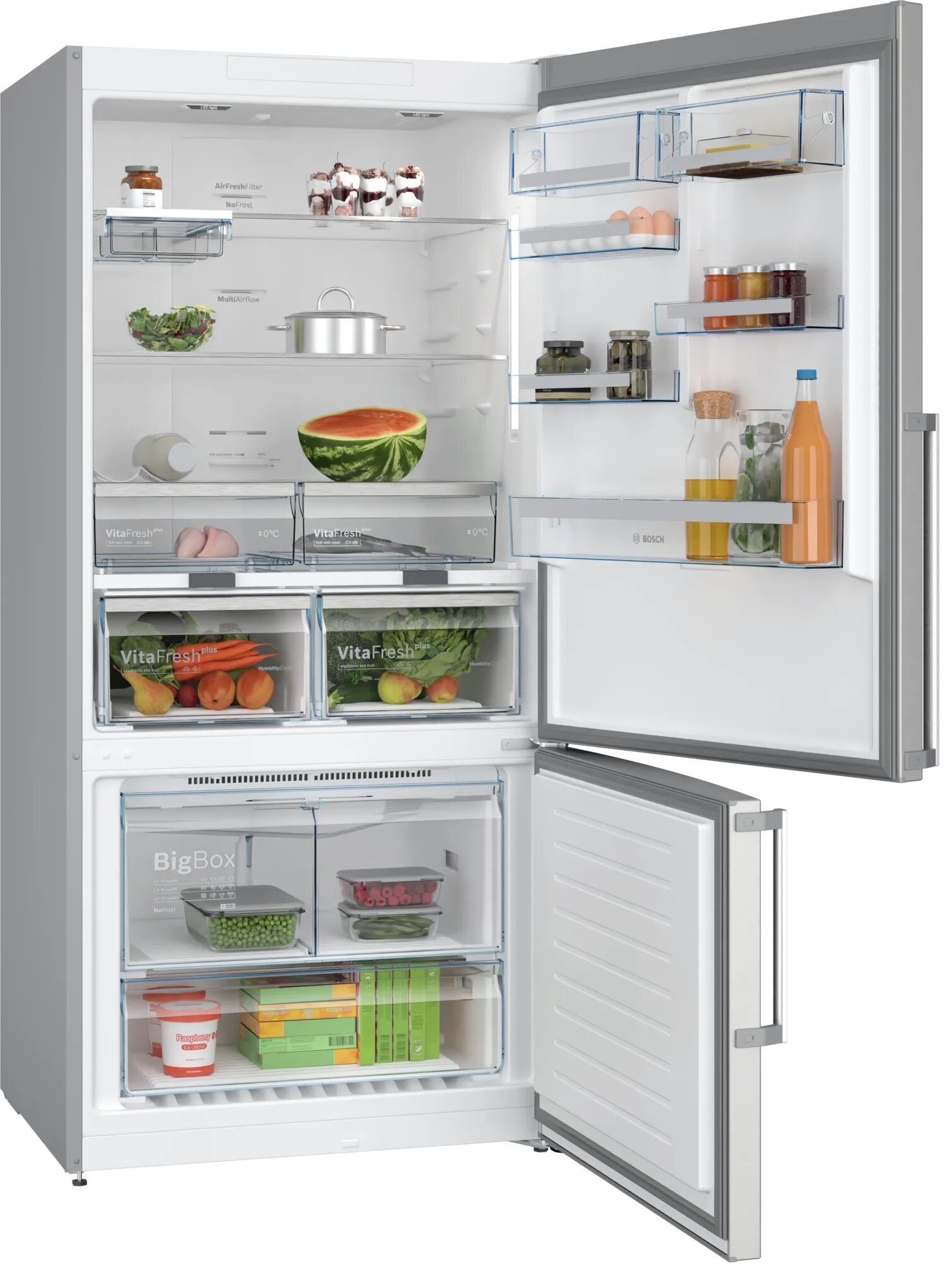 З рівнем шуму всього 39 дБ, цей холодильник працює тихо і не заважає вашому спокою. Клас енергоспоживання D гарантує економічну експлуатацію з річним споживанням на рівні 246 кВт. Обираючи BOSCH KGN86AIDR, ви отримуєте надійний та функціональний холодильник, який стане незамінним помічником у вашій кухні.