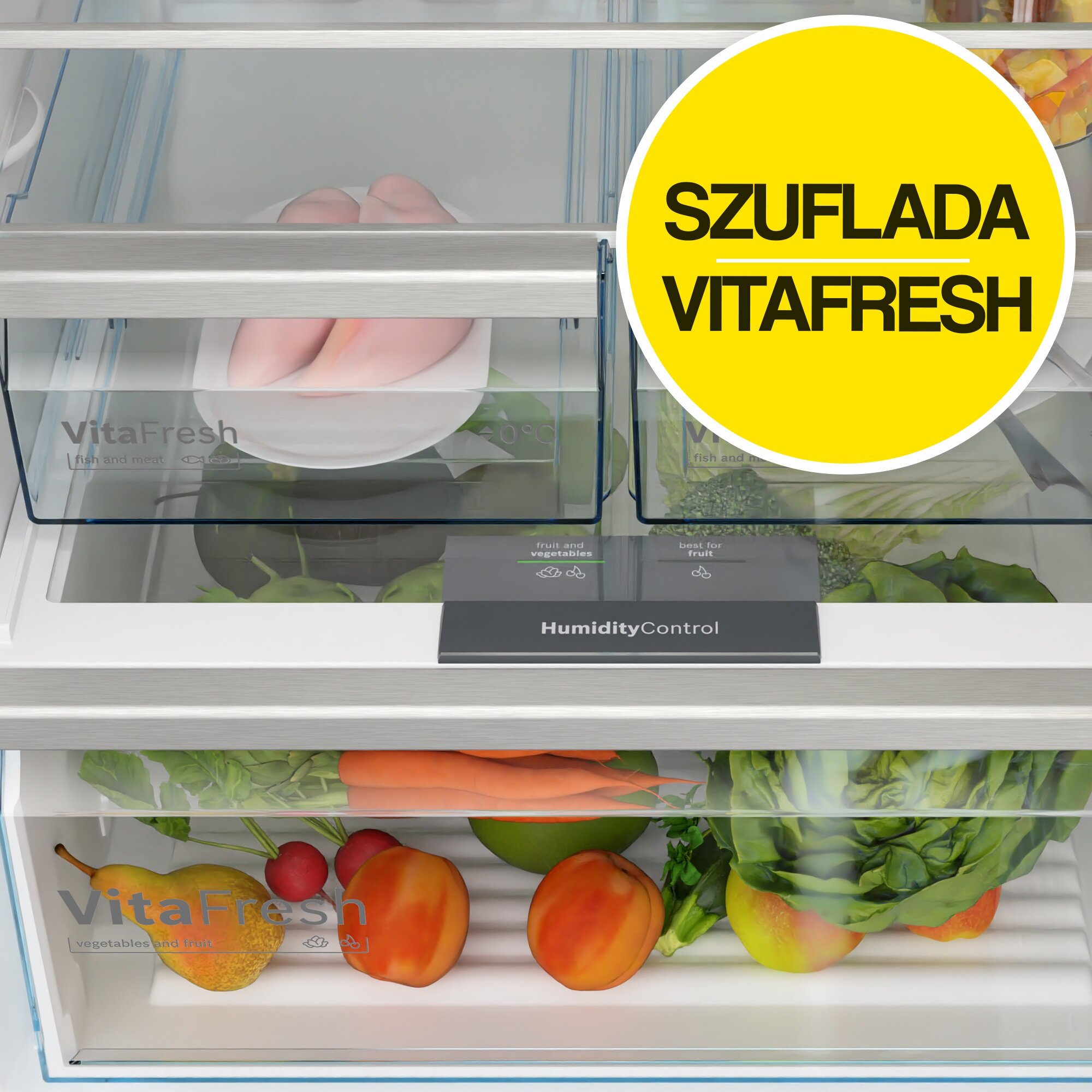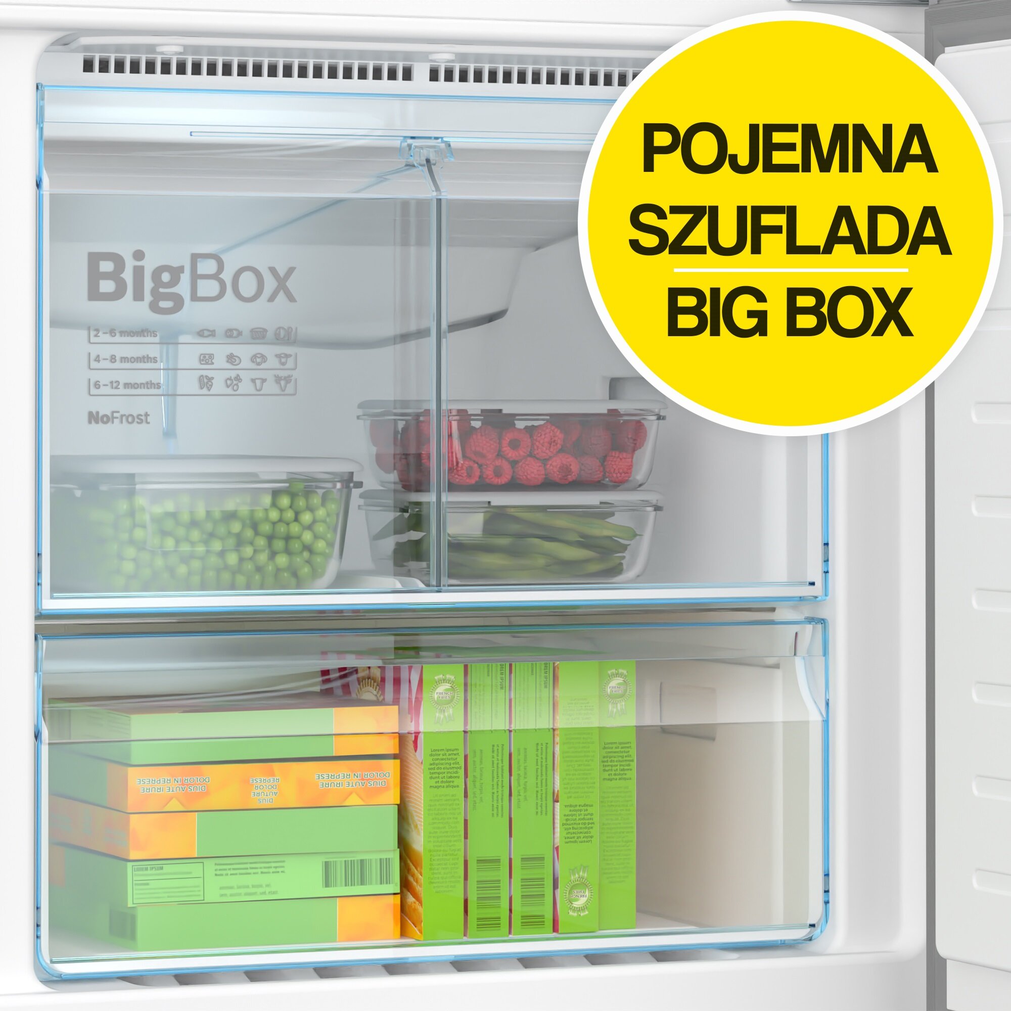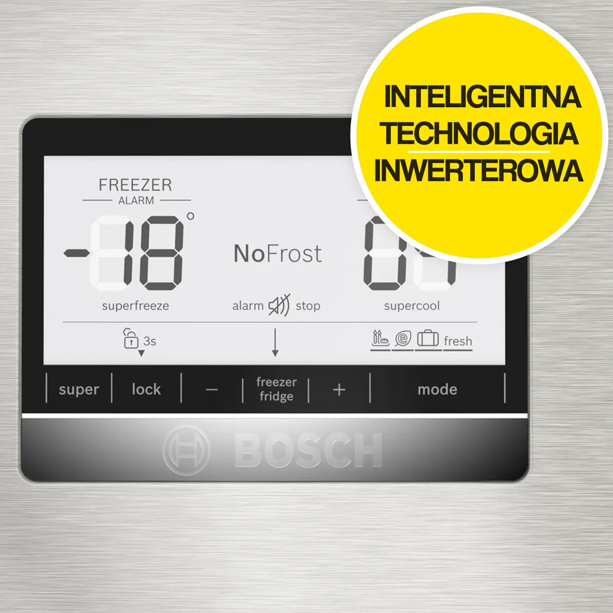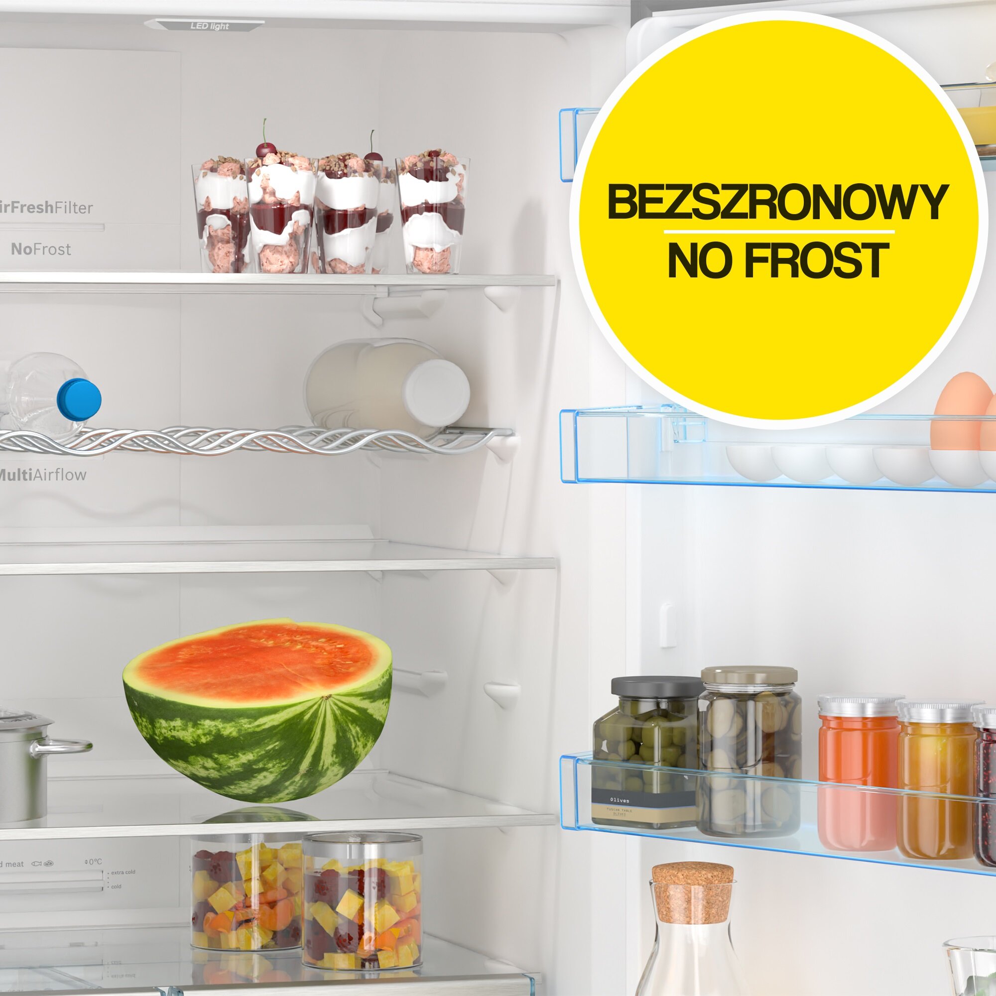 Завдяки системі No Frost вам більше не потрібно турбуватися про обмерзання, оскільки вона забезпечує постійну циркуляцію повітря, запобігаючи утворенню льоду в камерах. Холодильник має електронне управління та зручний дисплей, що дозволяє легко налаштовувати температурні режими.