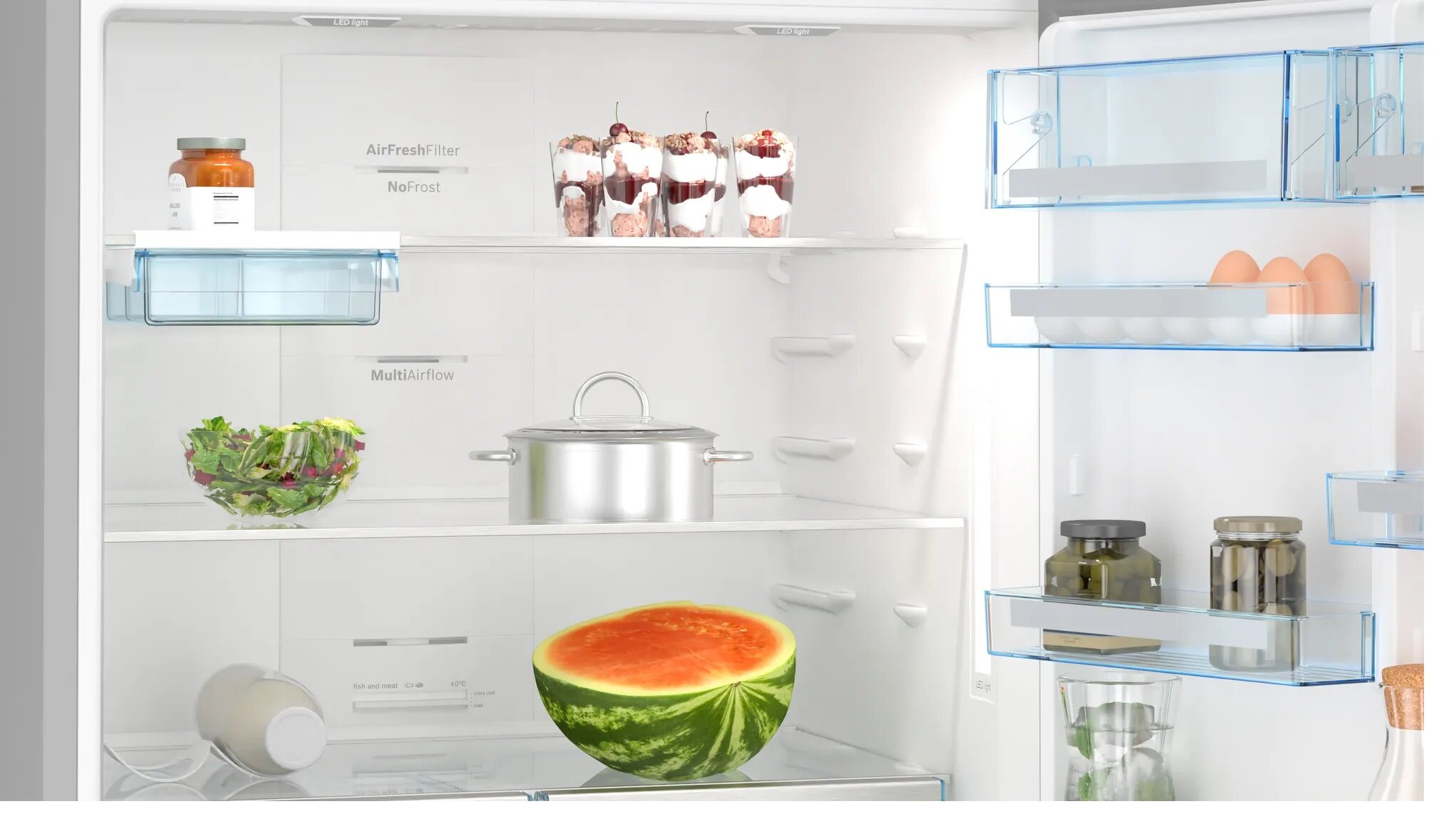 Також холодильник пропонує функції швидкого охолодження та швидкого заморожування, які стануть у нагоді під час приготування їжі або зберігання свіжих продуктів. Завдяки коморі нульової температури, продукти залишаються свіжими значно довше. Серед додаткових переваг — антиф fingerprints для легкого очищення поверхні, Multi Air Flow для рівномірного охолодження, а також яскраве LED-освітлення.