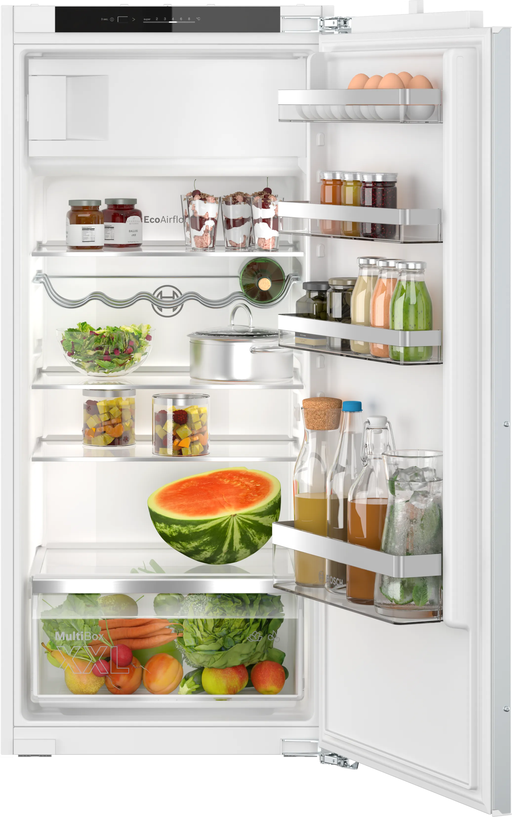Холодильник Bosch KIL42VFE0 має розміри 1221x541x548 мм та відповідно підійде для стандартних кухонних ніш. Завдяки змінному напрямку відкриття дверей, ви можете легко адаптувати його до свого простору та уподобань. З якісним оформленням і продуманими деталями, цей холодильник стане не лише практичною, а й стильній частиною вашого інтер'єру.