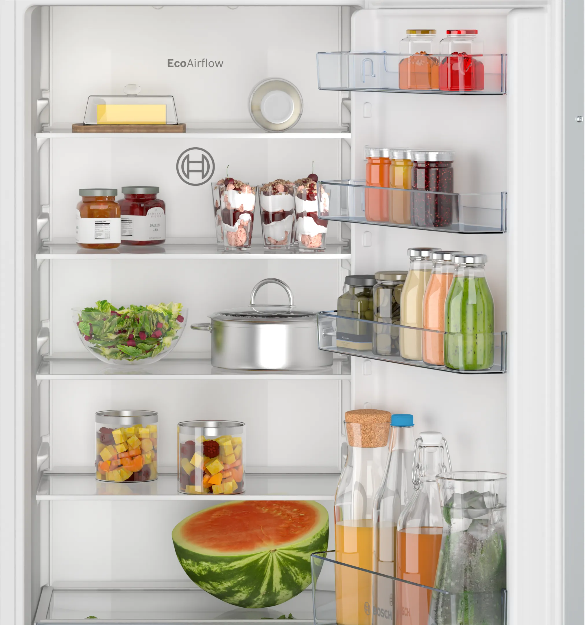 Розміри холодильника складають 1221 x 541 x 548 мм, а мінімальна висота нищі для вбудовування – 1225 мм. Це робить його відмінним вибором для стандартних кухонних гарнітурів. Холодильник Bosch KIR41NSE0 – це вдале поєднання зручності, естетики і сучасних технологій, що забезпечить вам бездоганну функціональність на щодень.