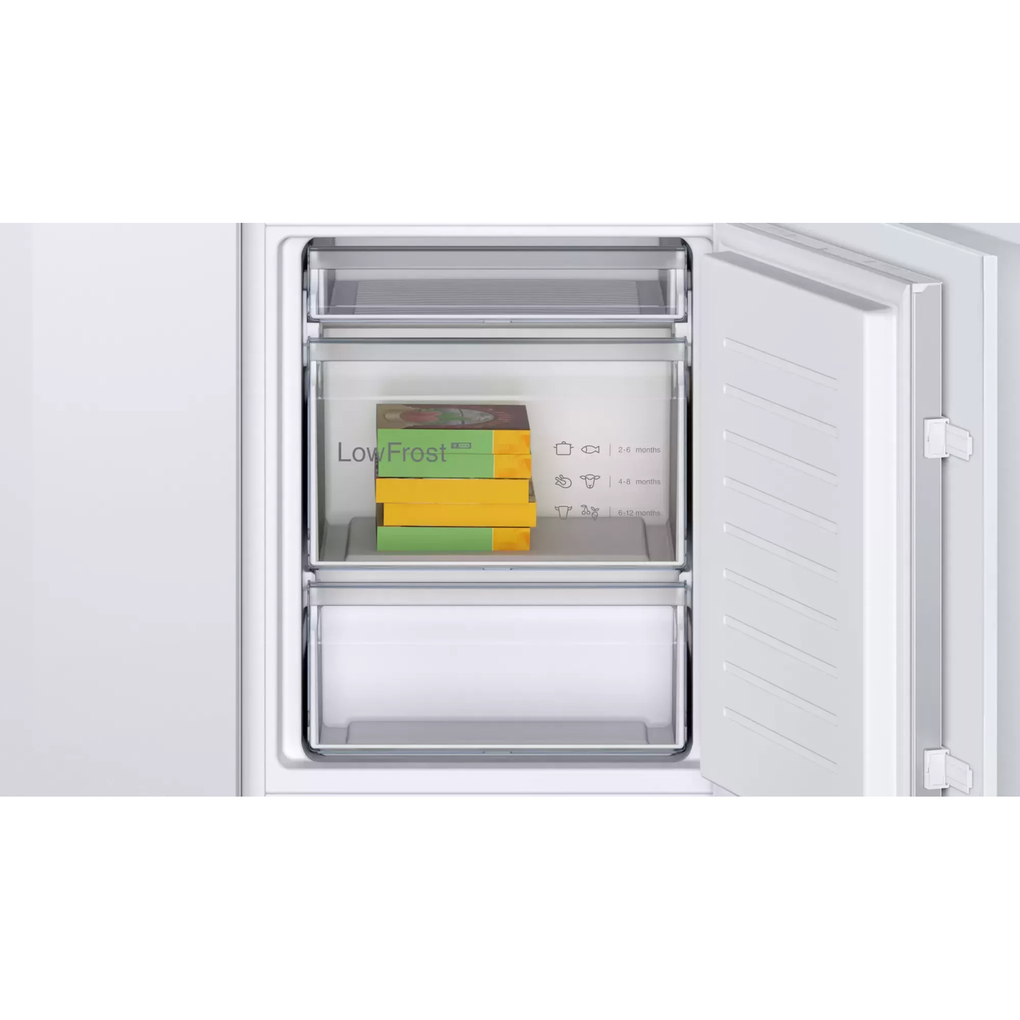 Холодильник Bosch KIV865SF0 - ідеальне рішення для вашої кухні. Це вбудований холодильник з морозильною камерою, що забезпечує стильний вигляд і функціональність. Завдяки своїм компактним розмірам (ШхВхГ: 54,1 x 177,2 x 54,8 см), він легко впишеться в будь-який інтер'єр.