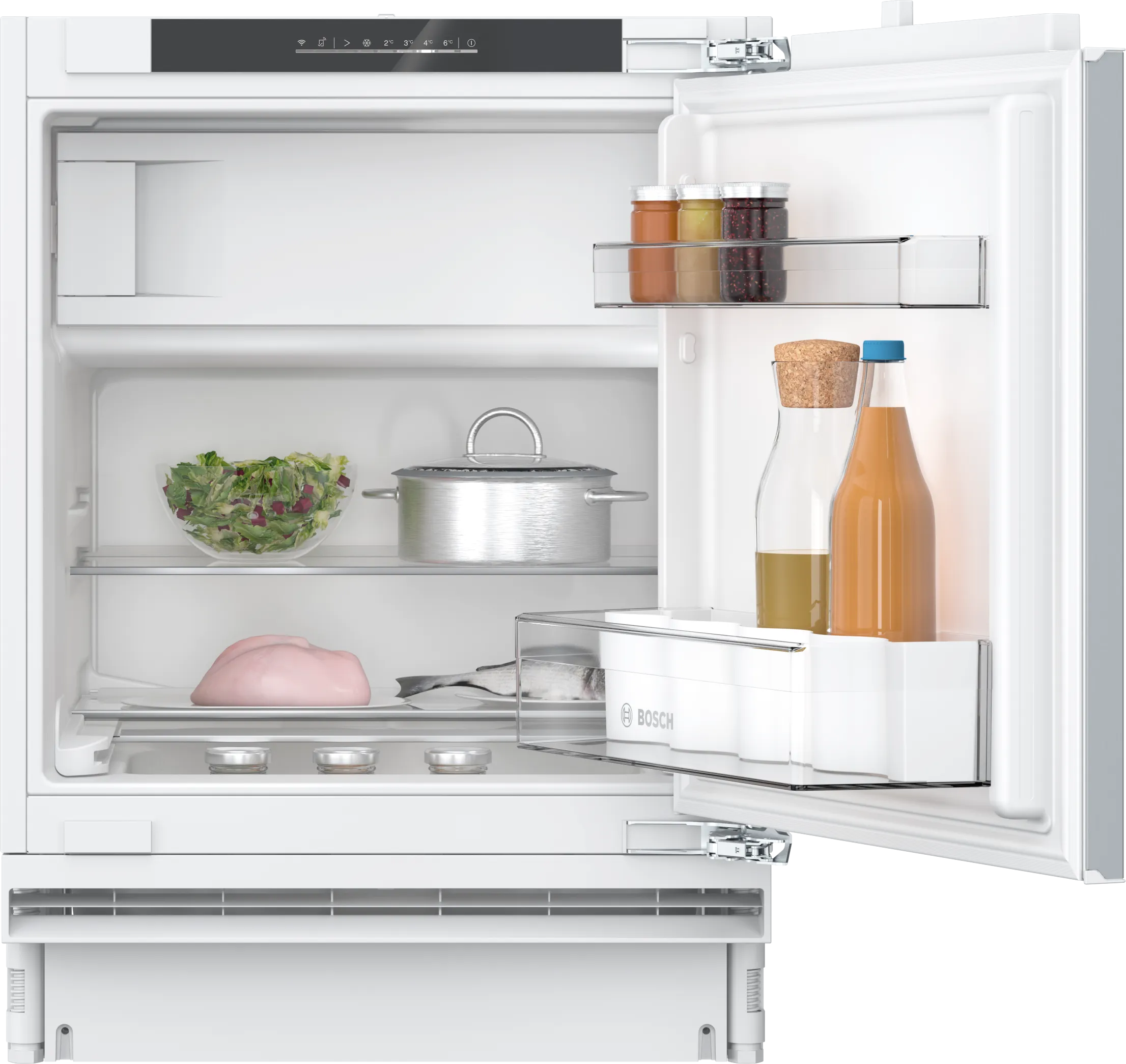 Холодильник Bosch KUL22VFD0 також підтримує технологію Home Connect, що забезпечує його інтеграцію з розумними домашніми пристроями, дозволяючи отримувати оновлення та контролювати пристрій через смартфон. Також в комплект входить і лідянка для льоду, що доповнює його функціональність.