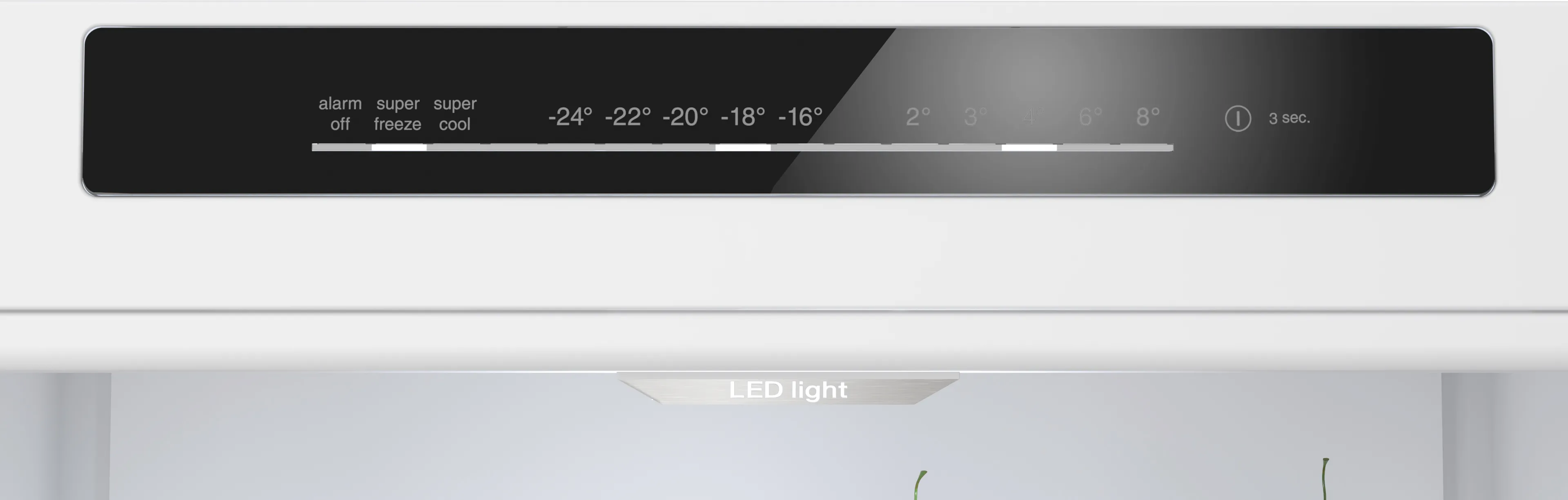 Прилад має високий рівень комфорту: його автоматичне розморожування, супер режим заморожування і інформативні функції з попередженням про відкриті дверцята або відмову в роботі забезпечують додатковий спокій. Рівень шуму в 29 дБ(A) дозволяє спати мирно, не завдаючи незручностей.