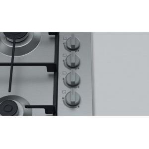 Ця варильна поверхня обладнана четирма газовими конфорками, що забезпечують достатню потужність для приготування різноманітних страв. Однією з ключових функцій є газ-контроль, що запобігає витоку газу, а електрозапалювання забезпечує легкість в використанні. Емальована сталь решітки гарантує простоту у догляді та довговічність.
