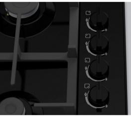 Ця багатофункціональна панель оснащена чотирма газовими конфорками, серед яких є економічна конфорка та конфорка WOK з двома рядами полум'я для приготування інтенсивних страв. Додатково, електрозапалювання забезпечує зручність використання, а газ-контроль гарантовано забезпечує безпеку під час приготування їжі.