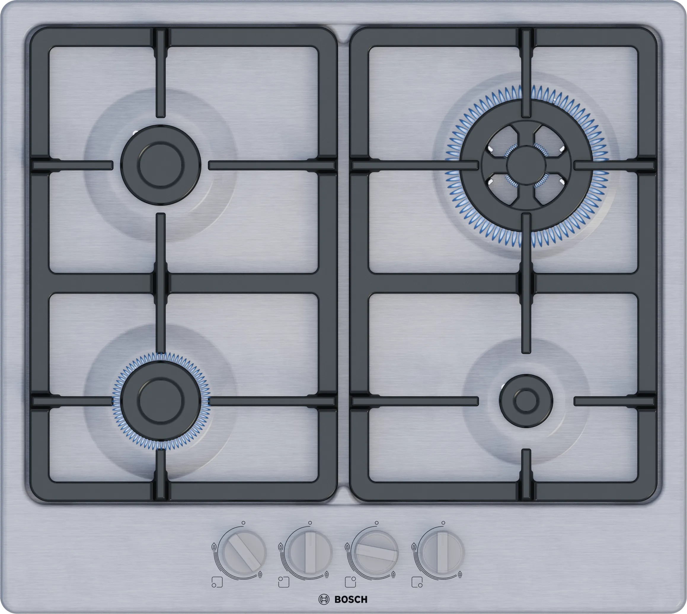 Варильна поверхня Bosch PGH6B5K90R - це ідеальний вибір для сучасної кухні, поєднуючи стильний дизайн та потужність. Ця газова варильна поверхня дозволяє одночасно готувати на чотирьох конфорках, що робить її незамінною помічницею в процесі приготування великих тарілок страв.