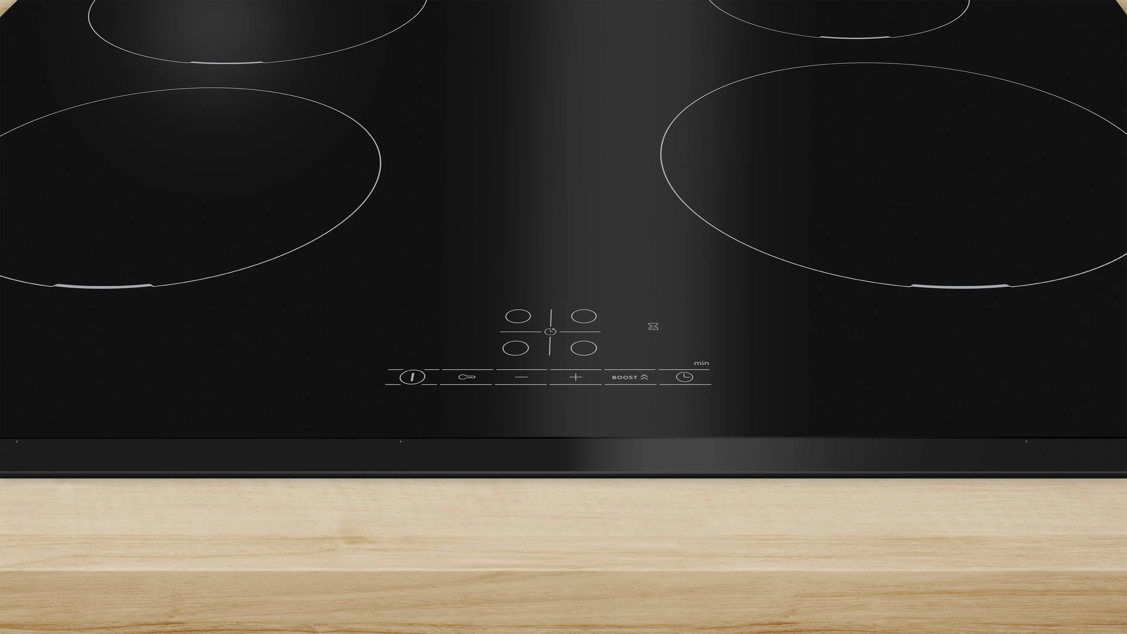 Елегантний дизайн з залежним обрамленням робить цю плиту не лише функціональним, але й стильним елементом вашої кухні. Інтуїтивно зрозумілий інтерфейс TouchSelect дозволяє легко обирати потрібну зону нагріву і регулювати температуру лише одним дотиком.