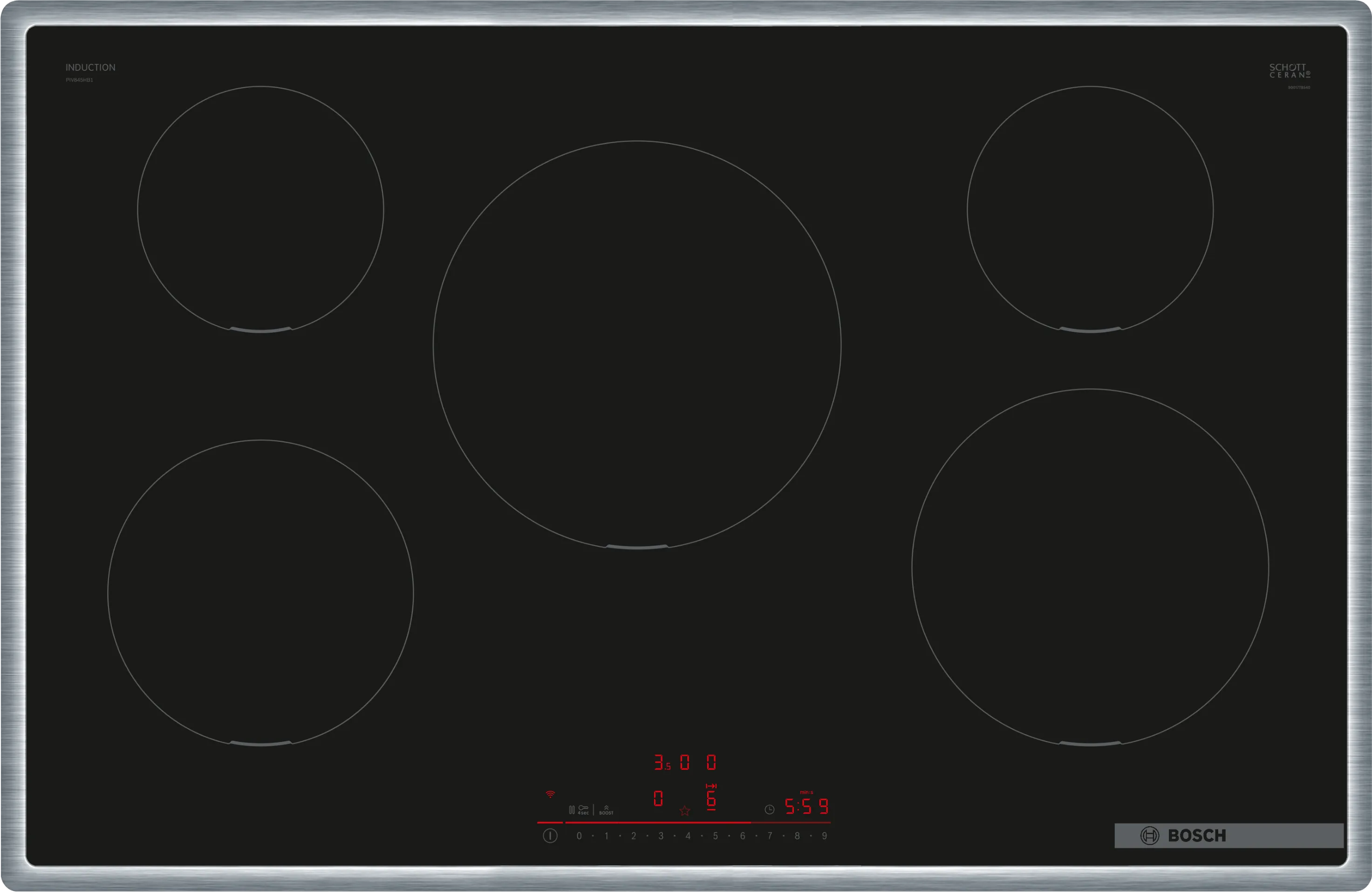 Варильна поверхня Bosch PIV845HB1E - це індукційна варильна поверхня з 5 зонами для приготування їжі. Головним матеріалом верхньої поверхні є скло кераміка в чорному кольорі зі стандартним краєм і нержавіючою сталі рамкою. Розміри варильної поверхні становлять 55 х 802 х 523 мм, ширина - 80 см. Потужність підключення складає 7400 Вт, довжина кабелю - 110 см. Гнучкість кухонних зон: 5 кухонних зон різного діаметру з можливістю регулювання потужності від 1,6 до 3,7 кВт. Керування варильною поверхнею здійснюється за допомогою технології Direct Select, яка дозволяє вибирати необхідні параметри швидко та просто. Також доступна можливість збереження улюблених налаштувань. Автоматичні функції: наявність функцій, які дозволяють автоматично вимикати плиту, а також використовувати режими швидкого розігріву та перерозподілу тепла. Також присутня можливість використання додаткових функцій через додаток Home Connect, зокрема, віддалена діагностика, управління витяжкою через варильну поверхню, можливість налаштування особистих сценаріїв для підключених побутових пристроїв. Функції безпеки: наявність дитячого захисту, функції паузи, управління потужністю, виявлення посуду та автоматичне вимкнення зони після завершення приготування. Також присутня відображення залишкового тепла для безпечного використання. Варильна поверхня Bosch PIV845HB1E забезпечить вам швидке та комфортне приготування їжі, використовуючи передові технології управління та безпеки.