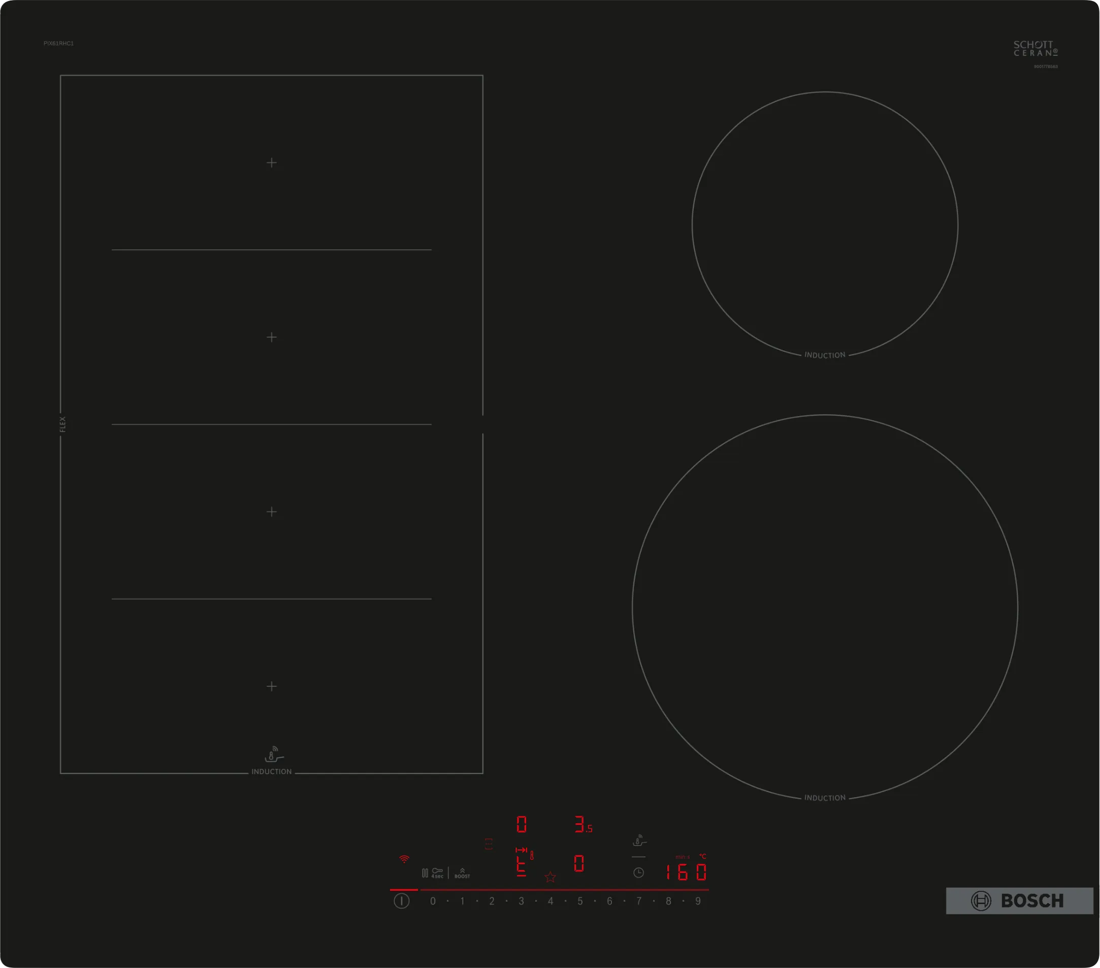 Bosch PIX61RHC1E не має вилки, що означає, що підключення до електричної мережі має виконуватися спеціалістом. Завдяки можливості підключення до Smart Home з Home Connect, ви отримуєте можливість контролювати варочну поверхню з вашого смартфона, що відкриває нові горизонти у приготуванні їжі.