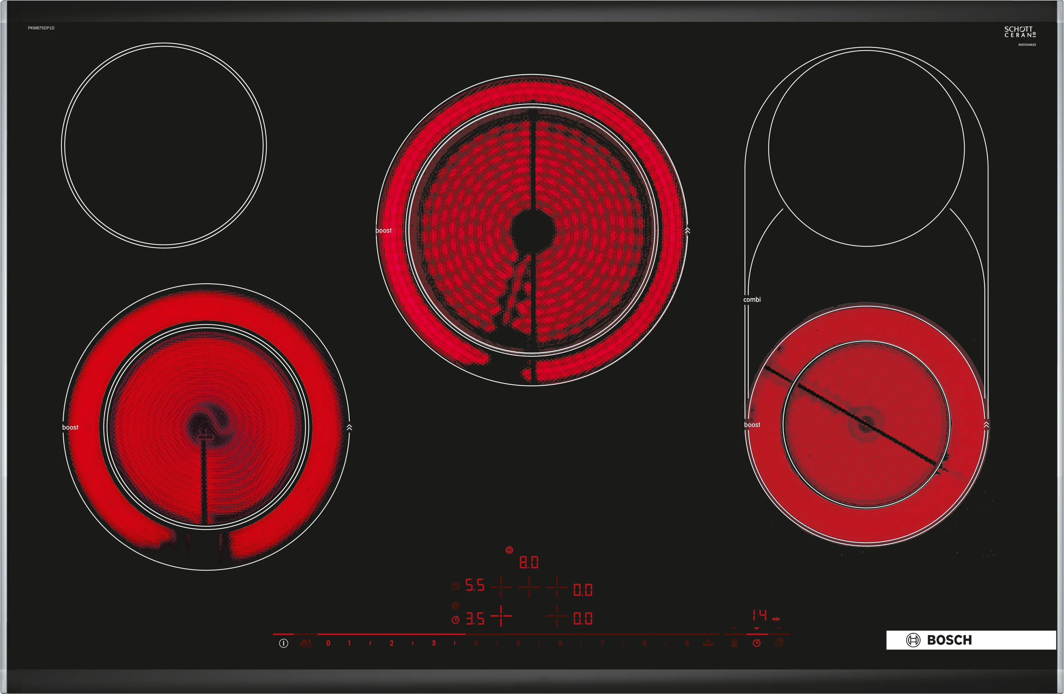 Bosch PKM875DP1D - варильна поверхня з електричними кухонними зонами та без рамки, яка забезпечує зручне керування та надійність. Завдяки DirectSelect Premium можна швидко та просто вибирати потрібні налаштування. Крім того, вона оснащена Bratsensor, який запобігає перегоранню їжі.