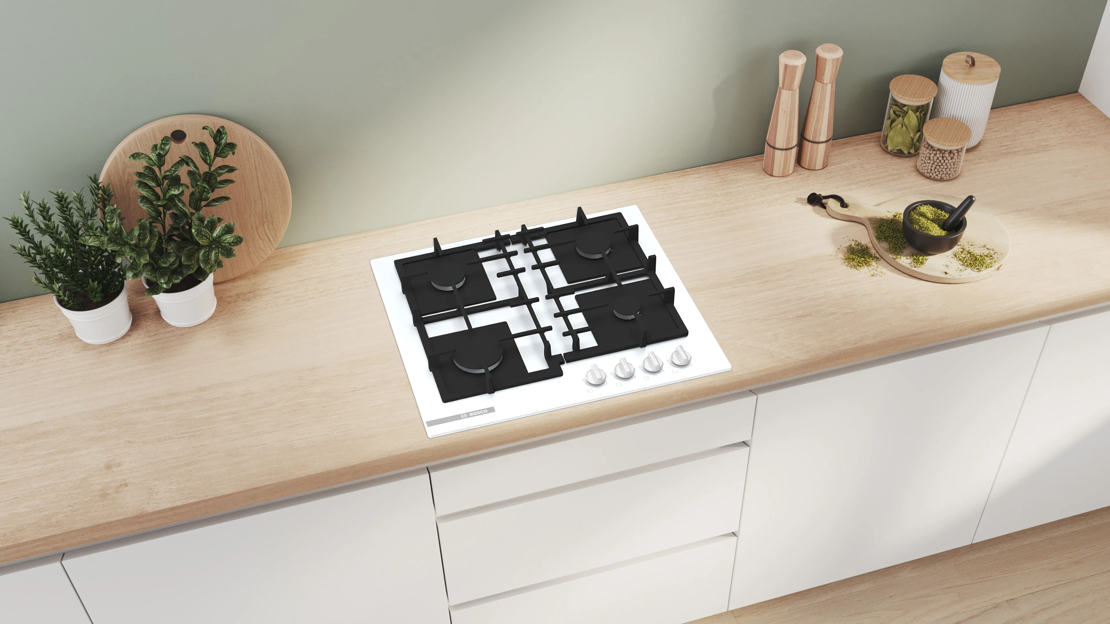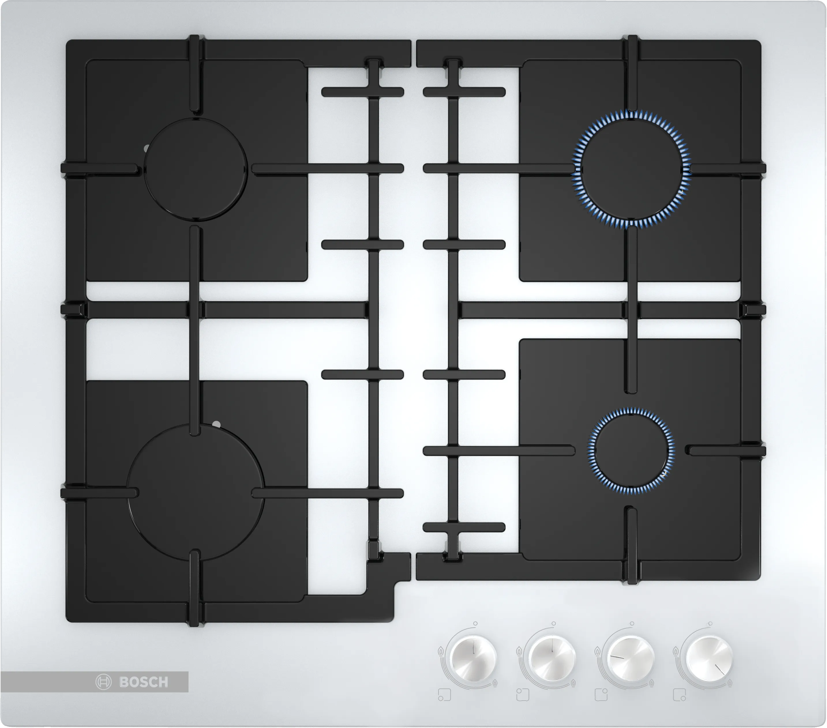 Bosch PNP6B2O92R - газова варильна поверхня з 4 позиціями, які можуть працювати одночасно. Матеріал решіток - чавунні окремі. Має можливість підключення до інтернету за допомогою технології Home Connect.
