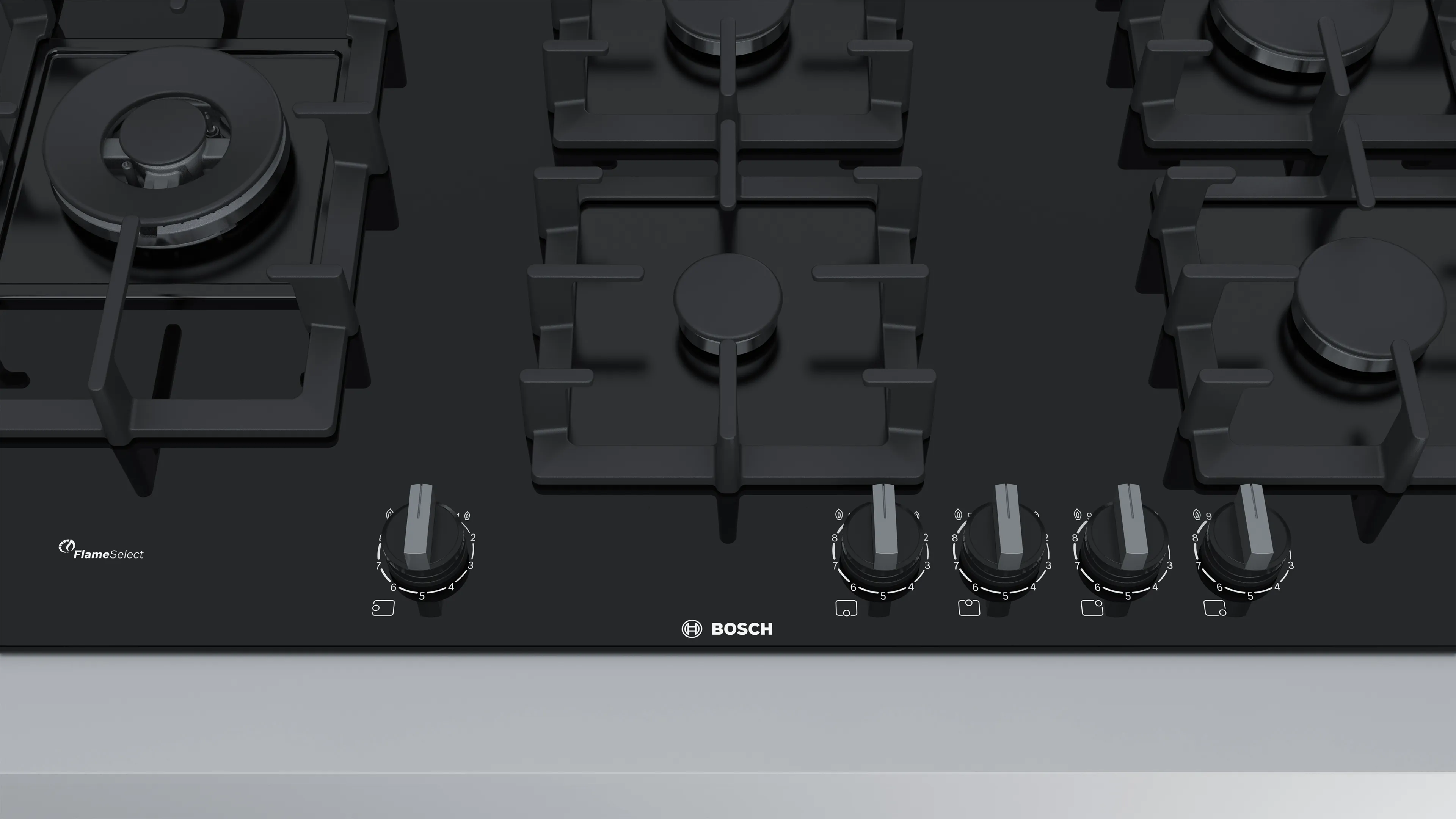 Варочна поверхня Bosch підтримує технологію FlameSelect, що забезпечує точний контроль потужності полум'я. Завдяки цій технології ви зможете легко налаштувати desired нагрів і отримати стабільний результат приготування. Додатково, плита оснащена чавунними решітками, що забезпечують додаткову стійкість і естетичний вигляд.