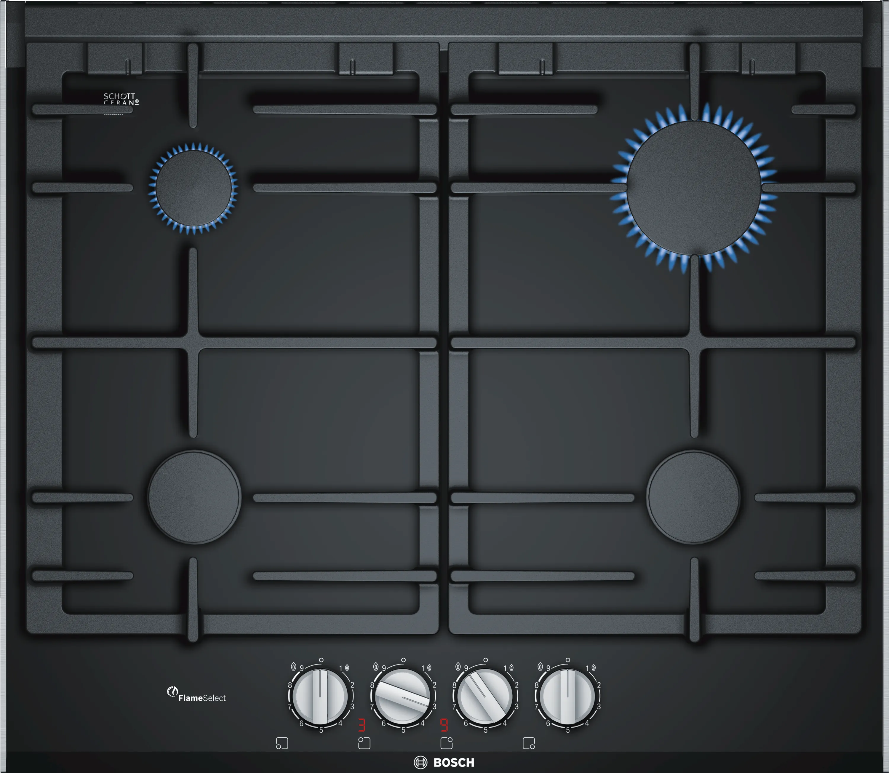 Варильна поверхня Bosch PRP6A6D70R може працювати як на природний газ H/E/(L) 20 (25) мбар, так і на зріджений газ G30,31 28-30/37 мбар. Її можна підключити до інтернету за допомогою Home Connect.