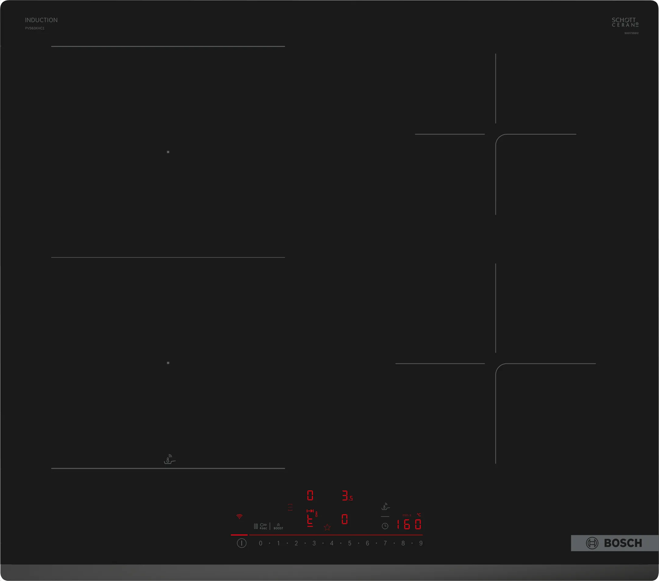 Варочна поверхня Bosch PVS63KHC1E поєднує в собі стильний дизайн і передові технології, що робить приготування їжі зручним і ефективним. Ця індукційна плита обладнана чотирма нагрівальними зонами, які забезпечують швидке та рівномірне нагрівання посуду.