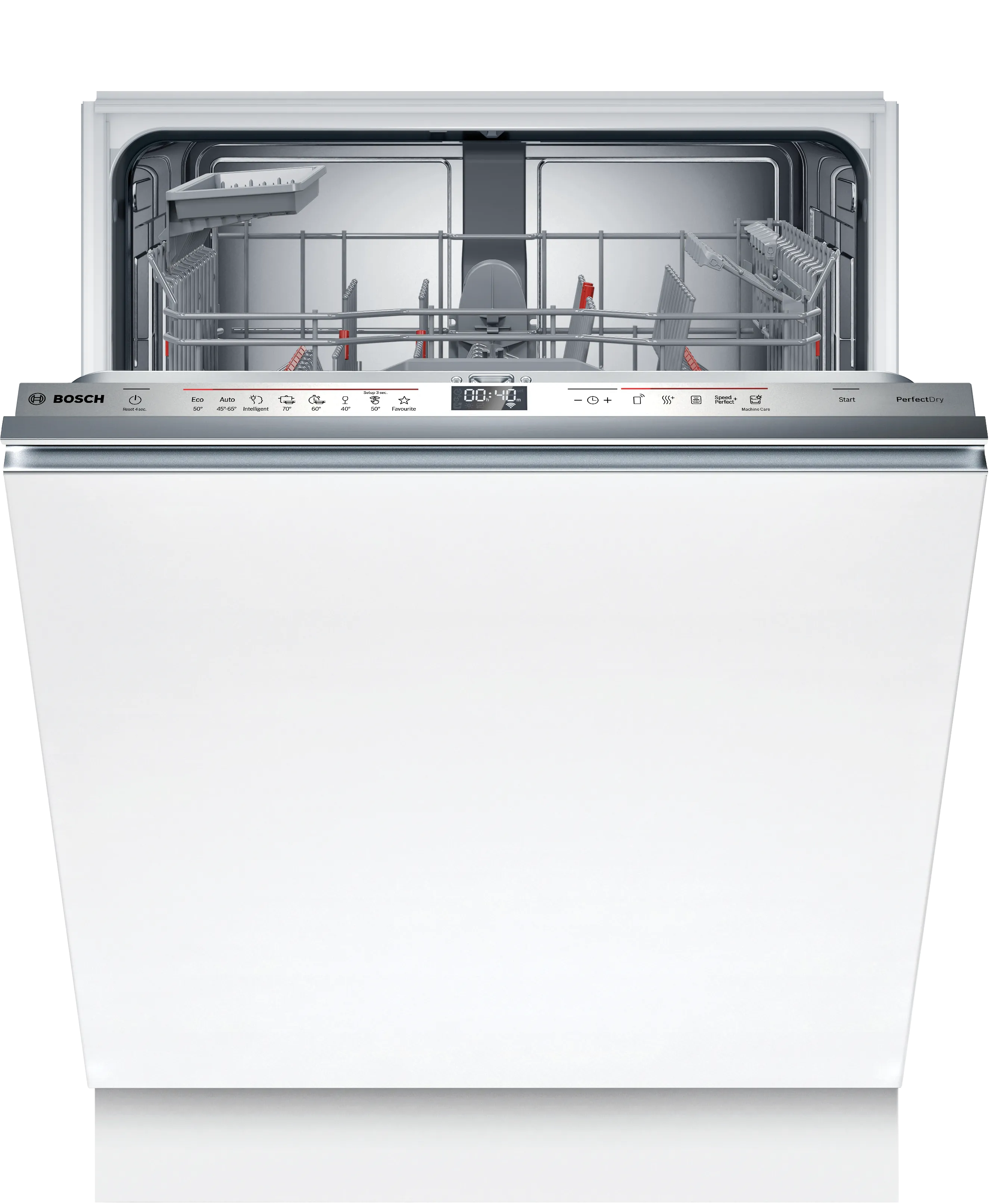 Щодо системи корзин, тут використовується Komfort Plus Korbsystem, що забезпечує високу гнучкість при загрузці. Посудомийна машина має можливість вищівання верхньої корзини з rackMatic.