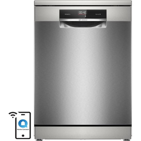 Посудомийна машина характеризується розмірами 84,5x60x60 см та низьким рівнем шуму 43 дБ, що гарантує комфортне користування навіть під час роботи приладу. Завдяки інверторному двигуну та можливості підключення до Wi-Fi, ви можете віддалено керувати машиною за допомогою програми Home Connect™.